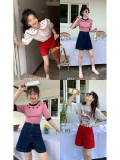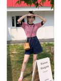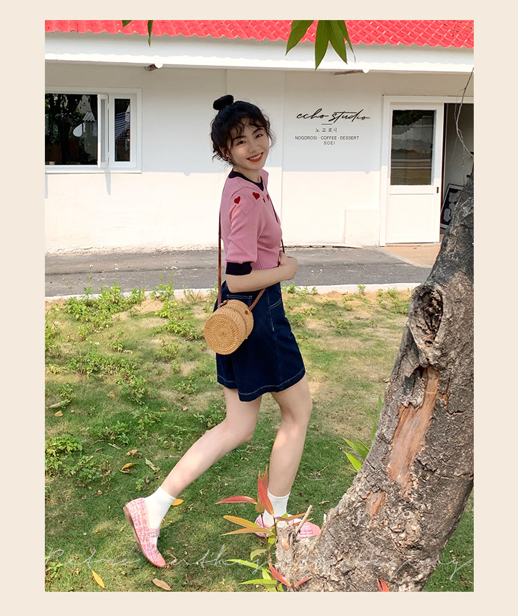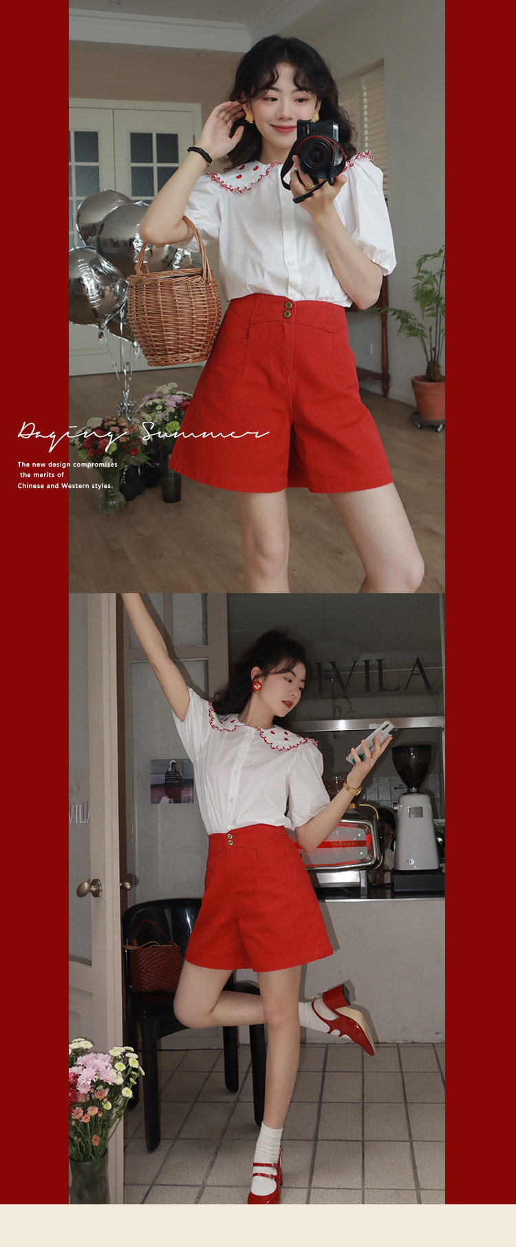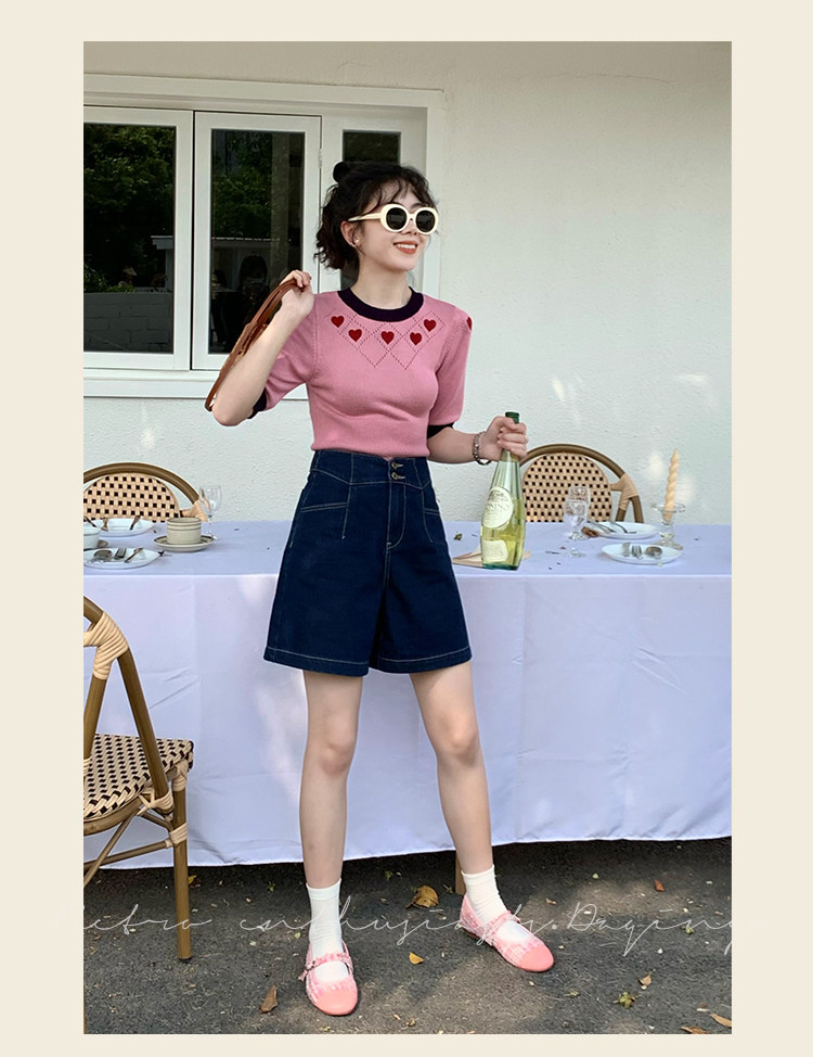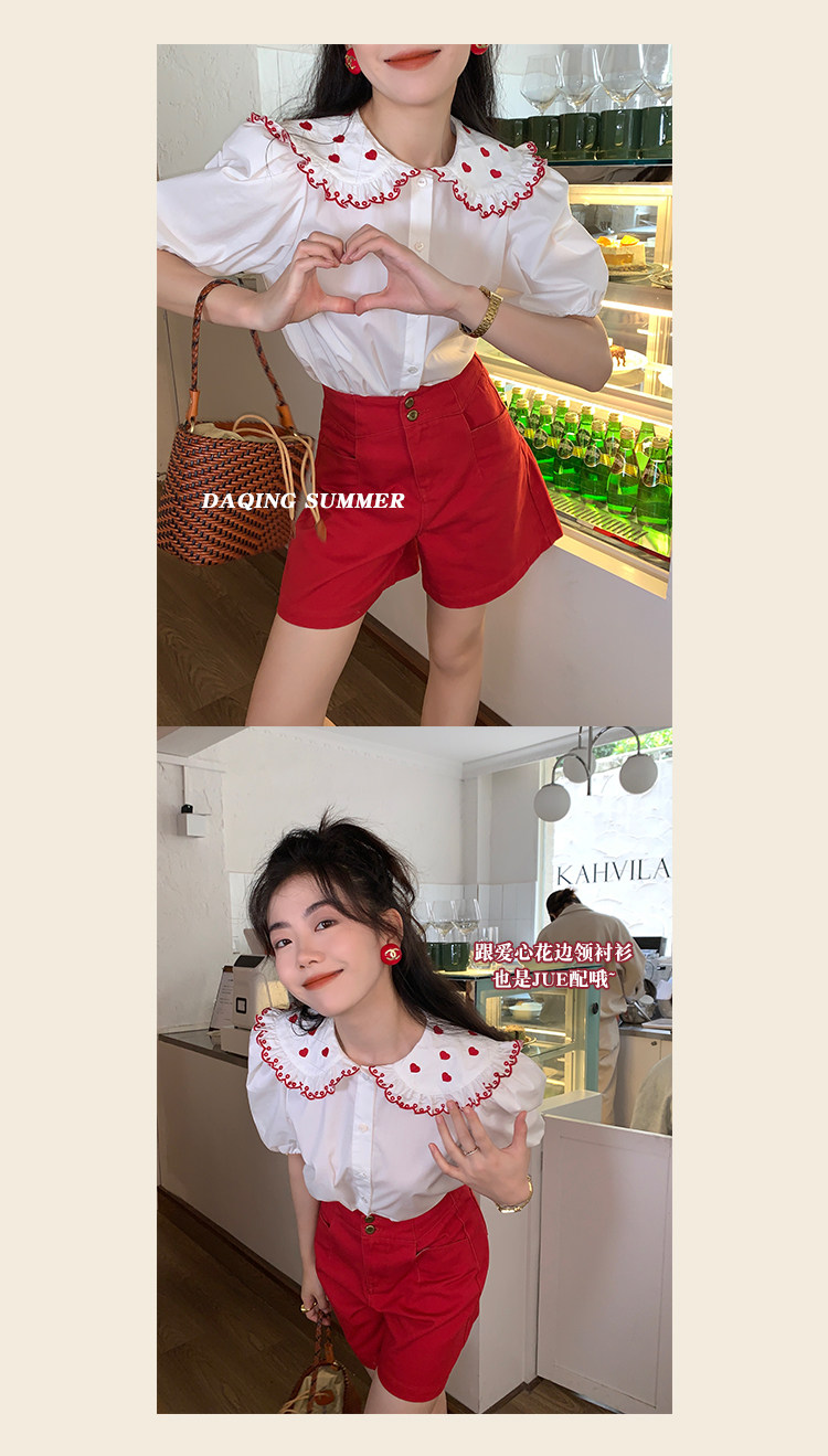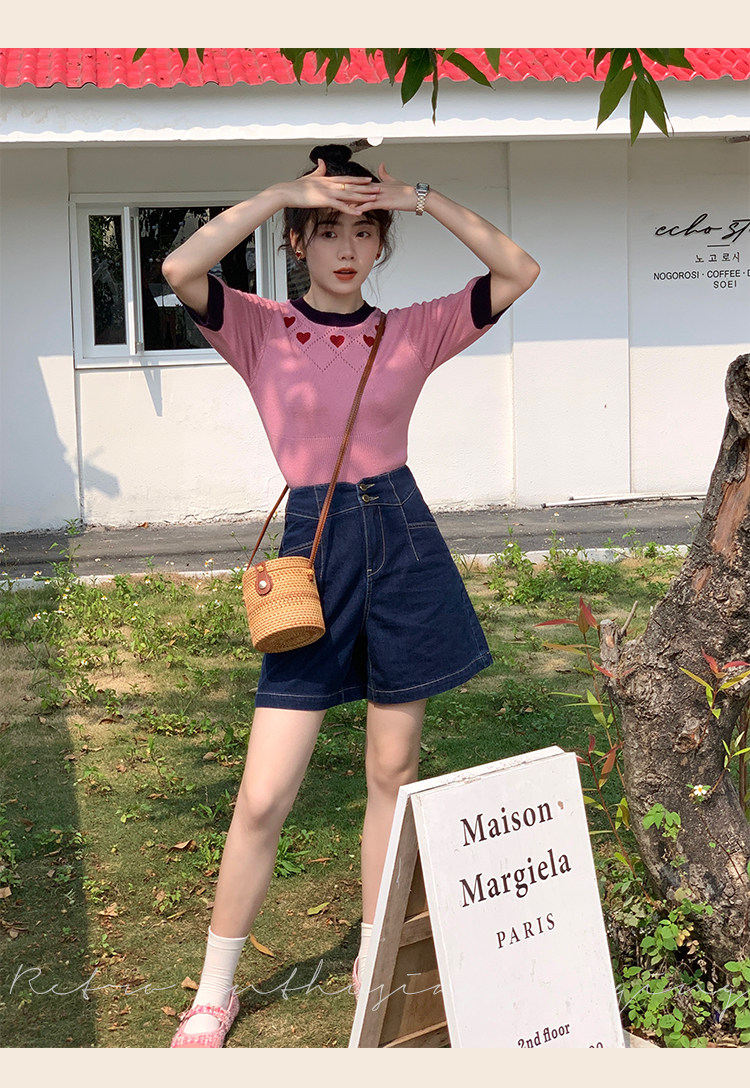 Ретро красные шорты, летние штаны, джинсовая юбка, высокая талия, свободный прямой крой