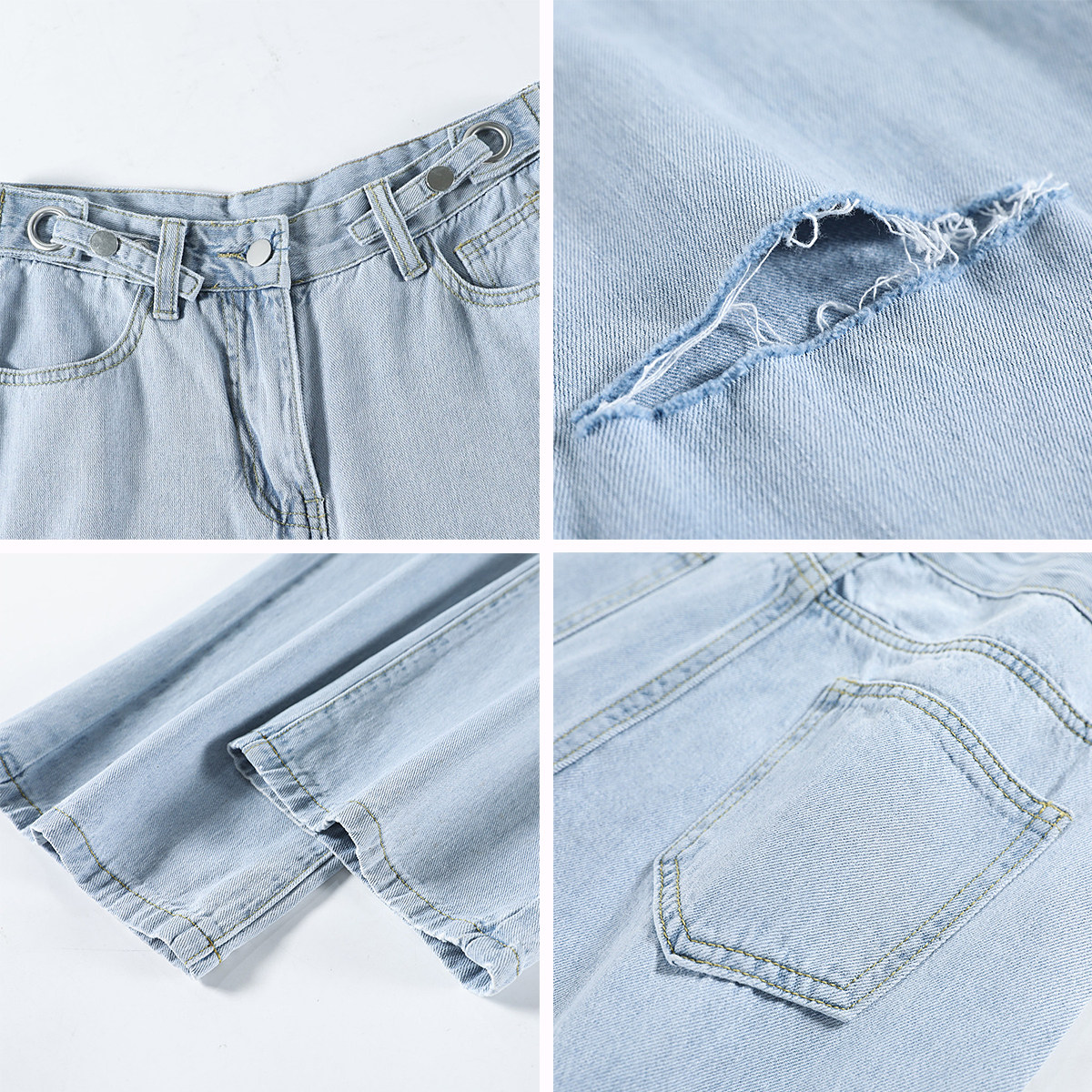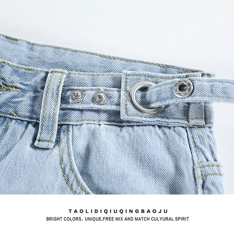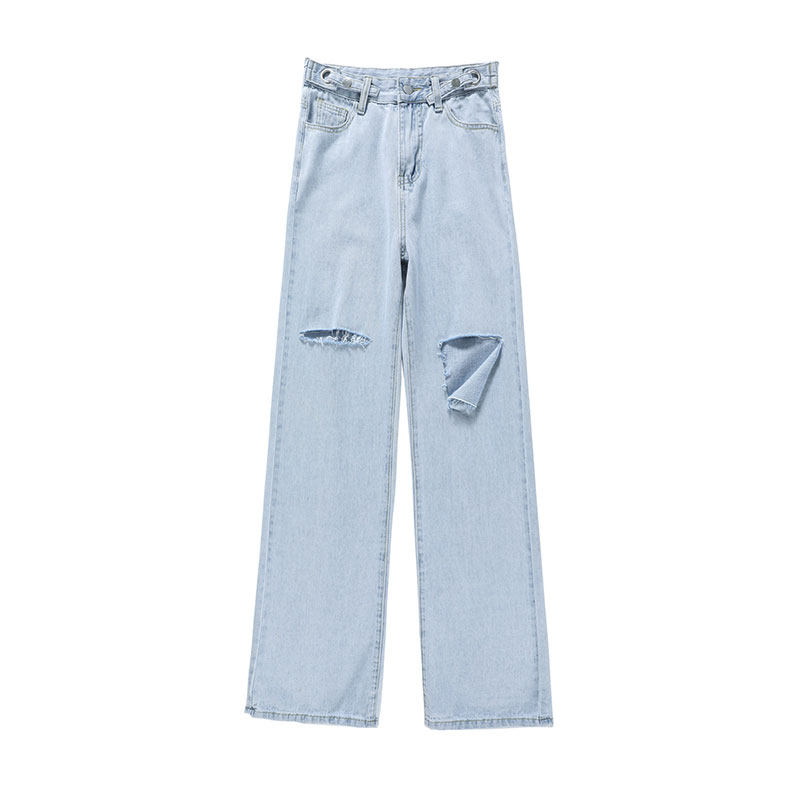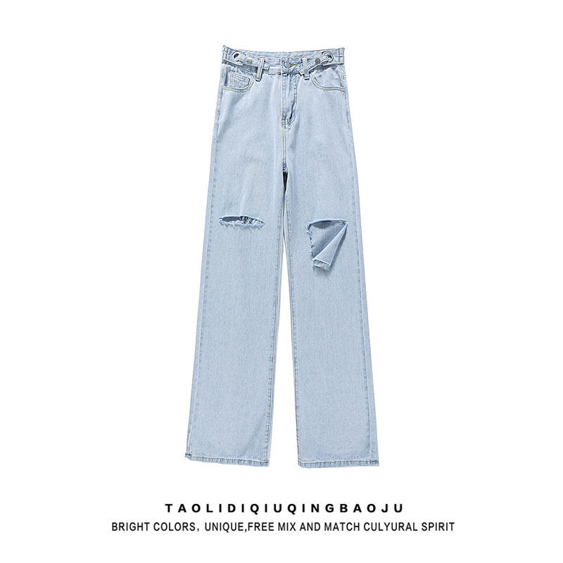 Синие джинсы, тонкие штаны, высокая талия, свободный прямой крой