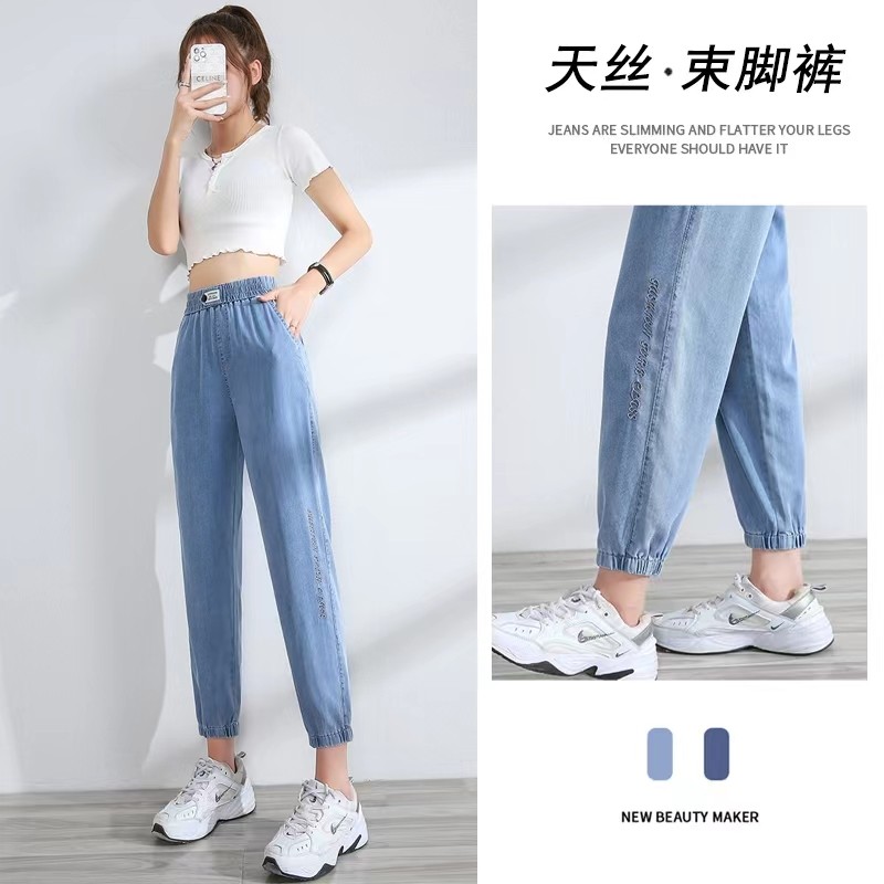 Шелковые сверхлегкие легкие и тонкие джинсы, летние штаны, оверсайз