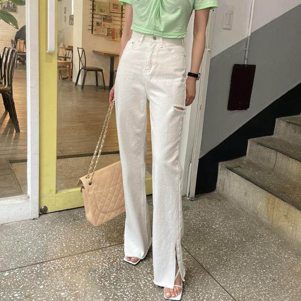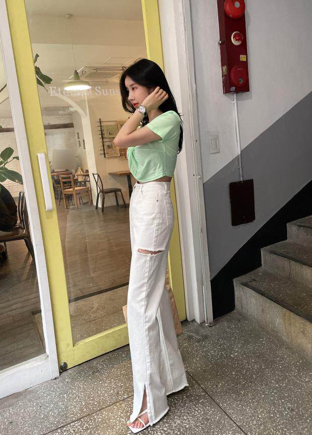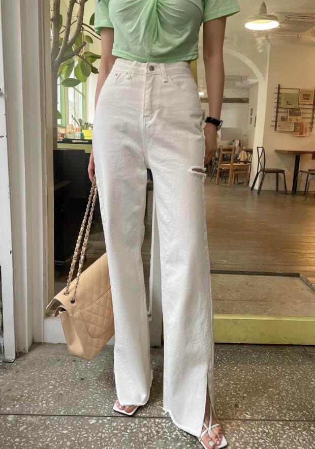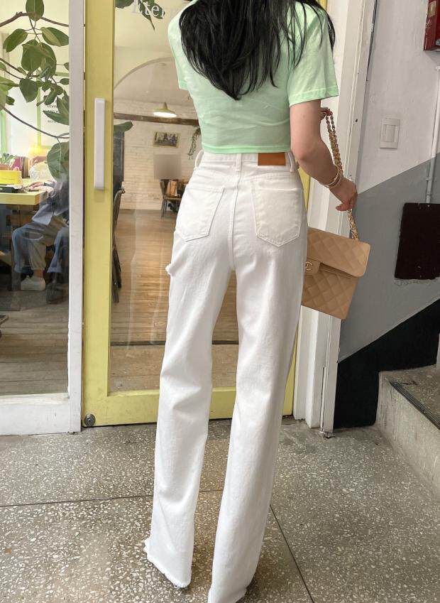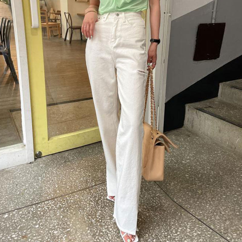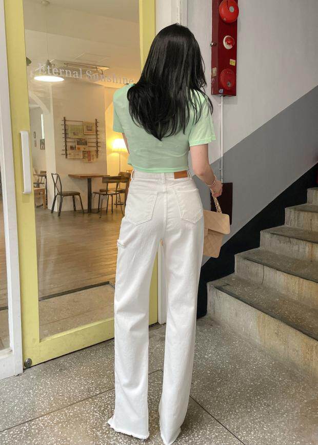 Летние джинсы, штаны, в корейском стиле, высокая талия, свободный крой
