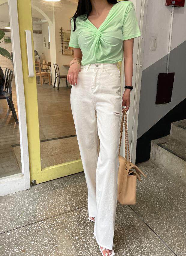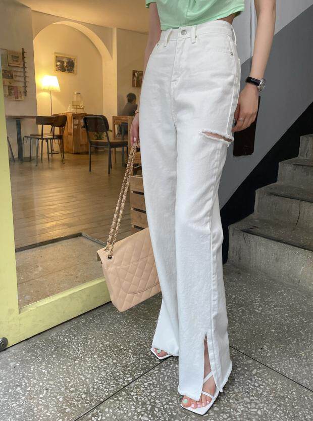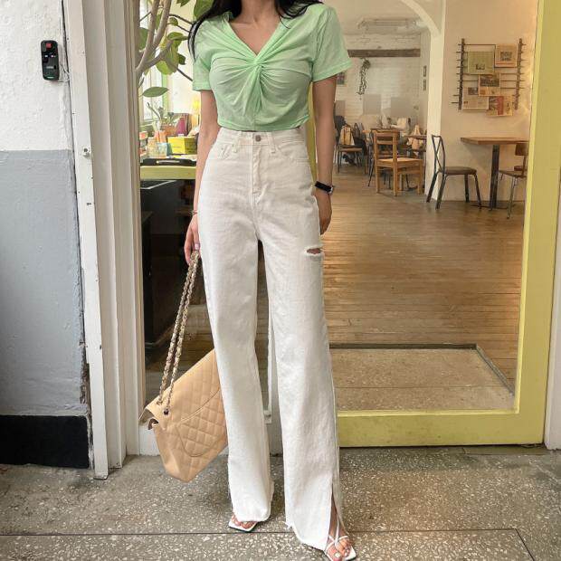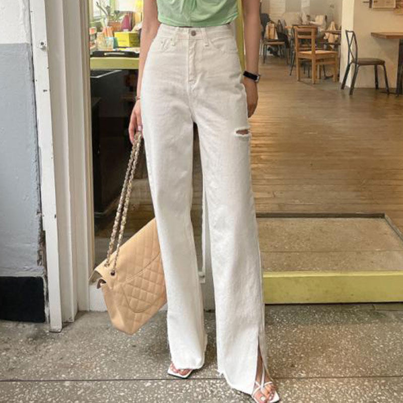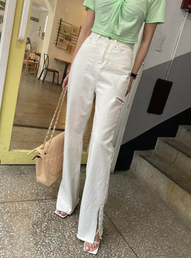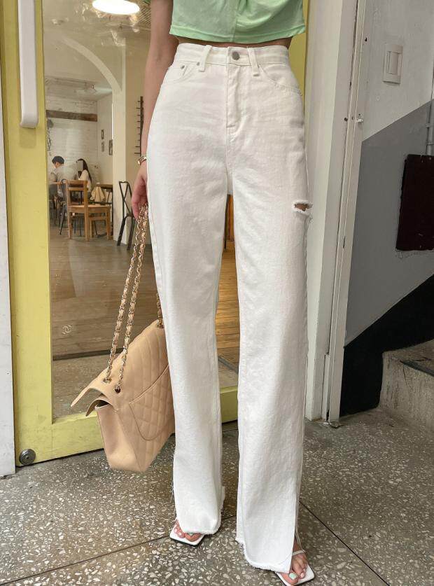 Летние джинсы, штаны, в корейском стиле, высокая талия, свободный крой
