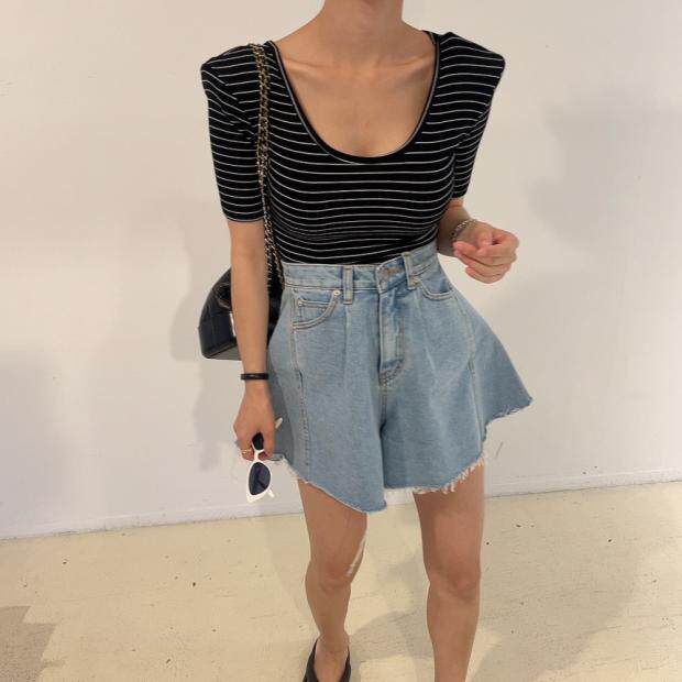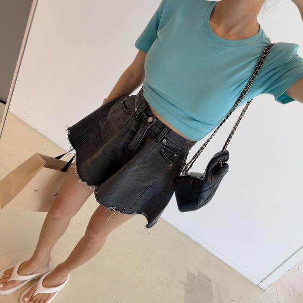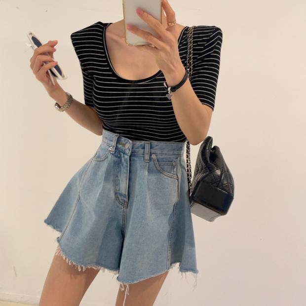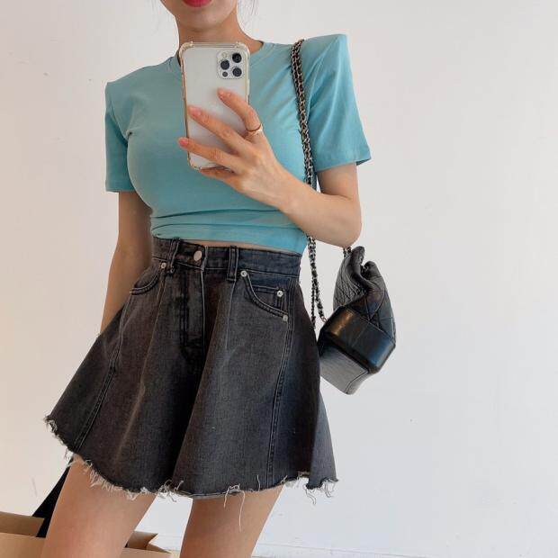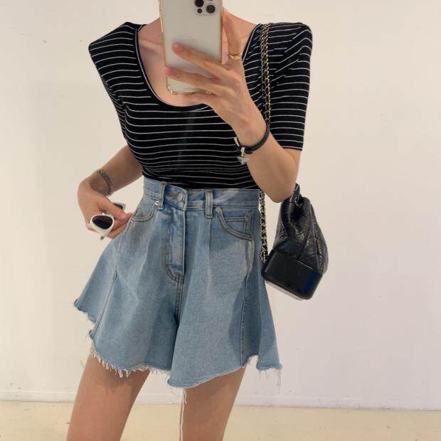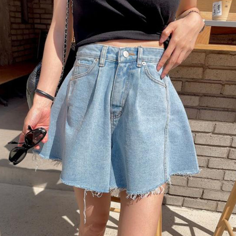 Летняя ретро джинсовая юбка, шорты, штаны, в корейском стиле, высокая талия, свободный крой