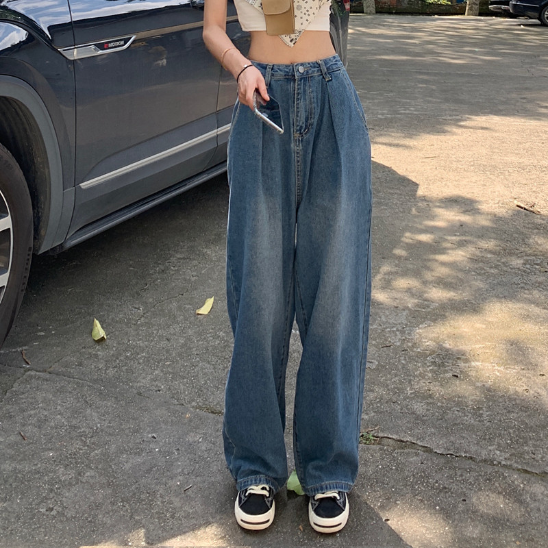 Джинсовые весенние джинсы, ретро темные штаны, коллекция 2023, высокая талия, свободный прямой крой