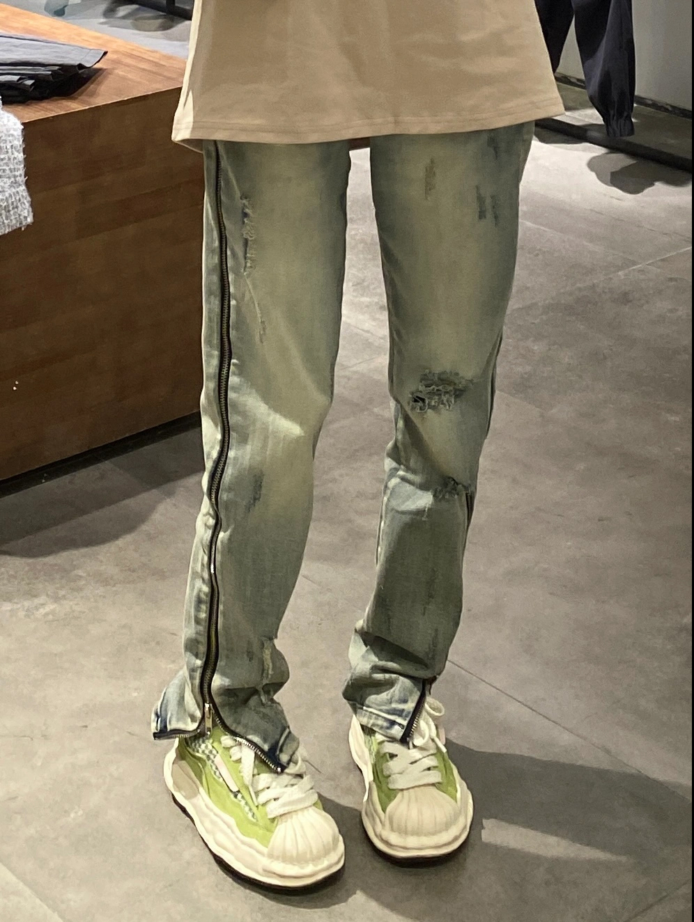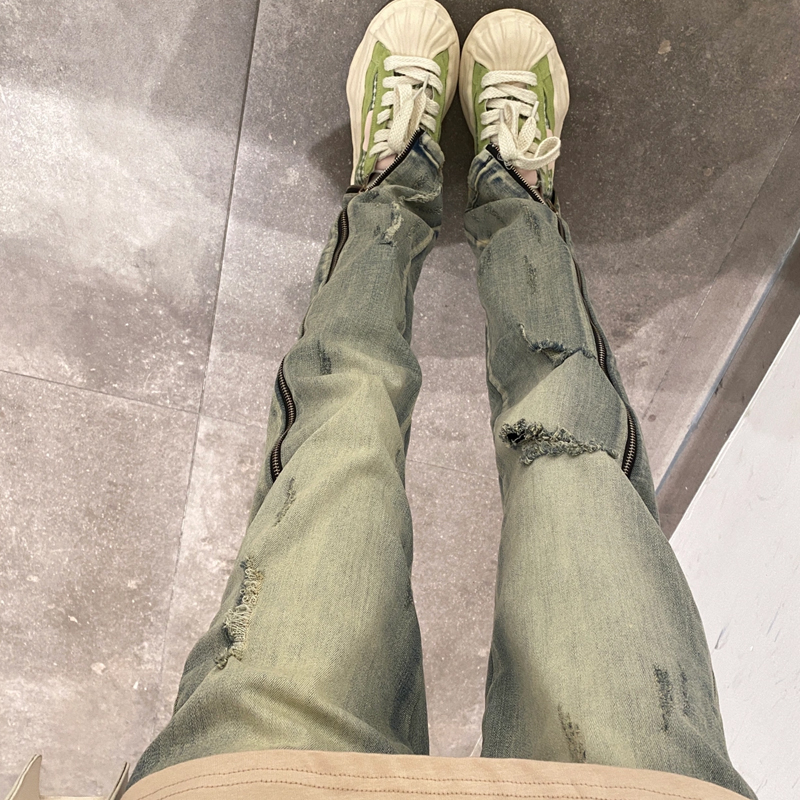 Tide, джинсовые джинсы с молнией, дизайнерские ретро эластичные штаны, в американском стиле, на молнии, тренд сезона, свободный прямой крой