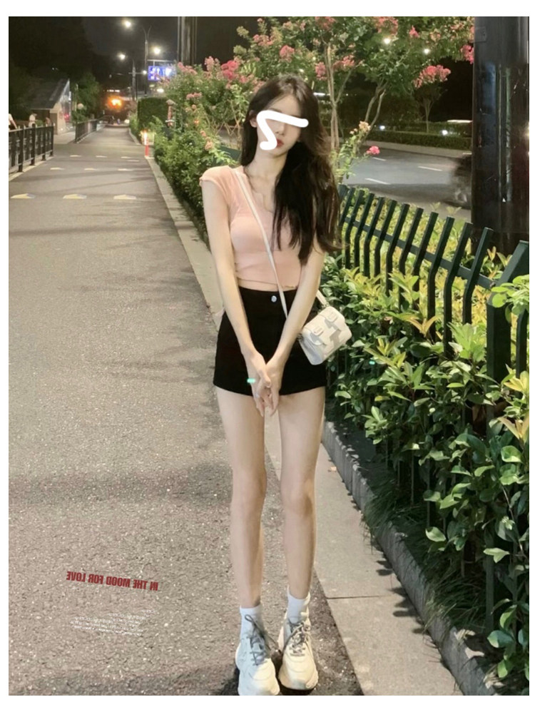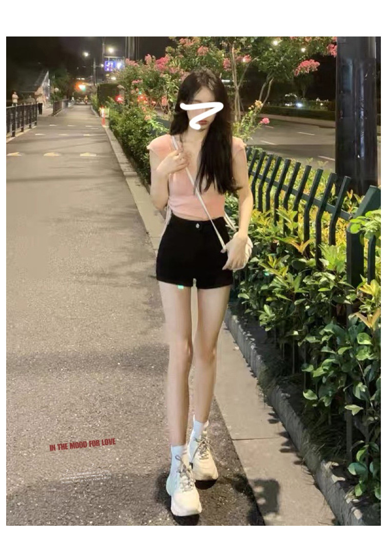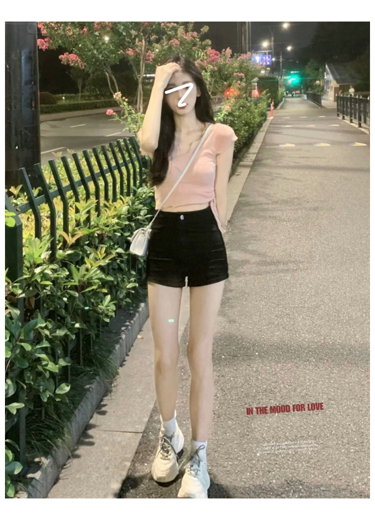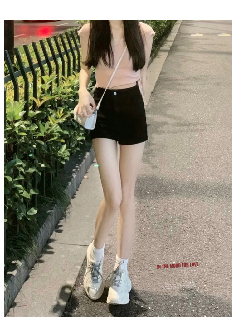Черная джинсовая юбка, шорты, летние тонкие штаны, высокая талия, в обтяжку, А-силуэт
