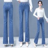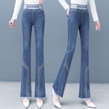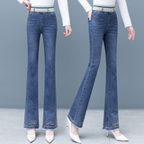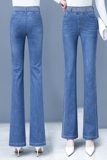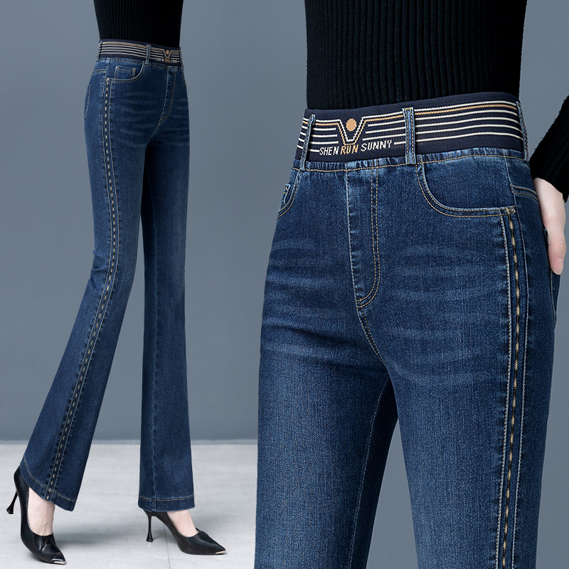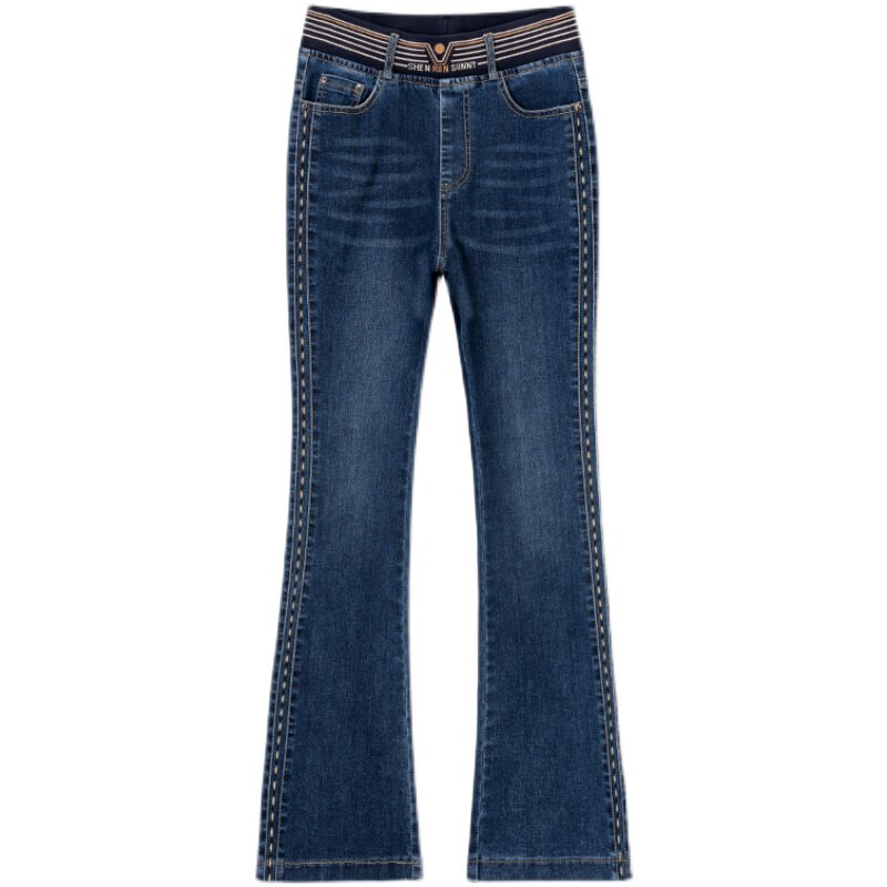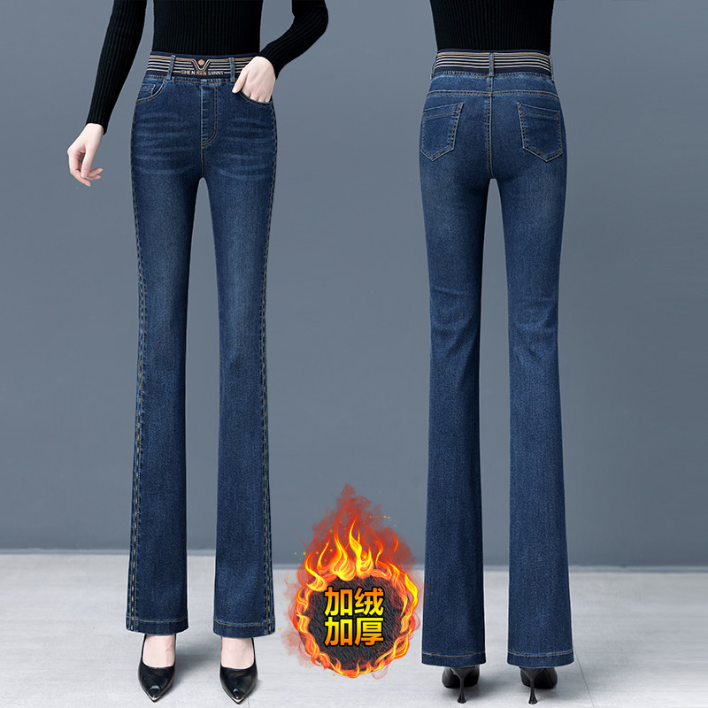 Демисезонные утепленные джинсы, штаны, мегафон, высокая талия, коллекция 2023, по фигуре