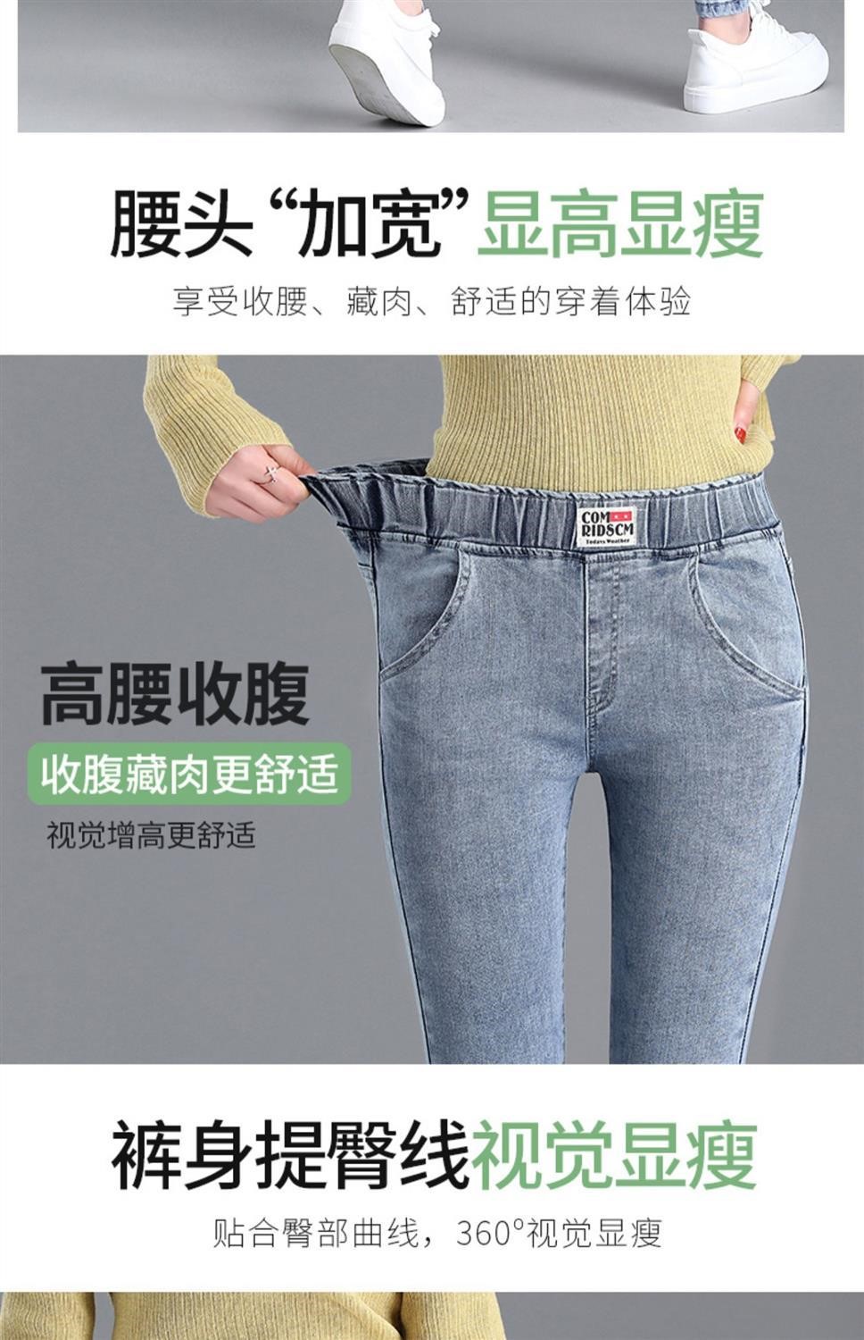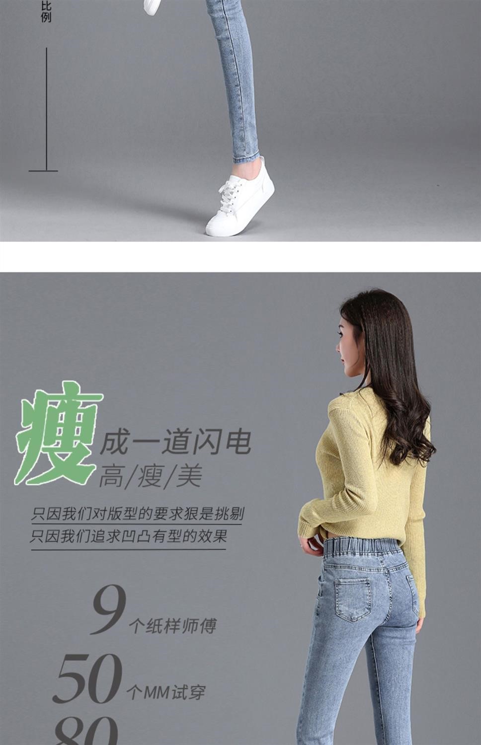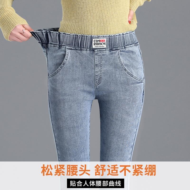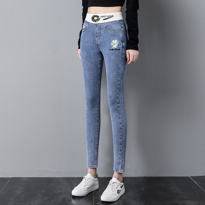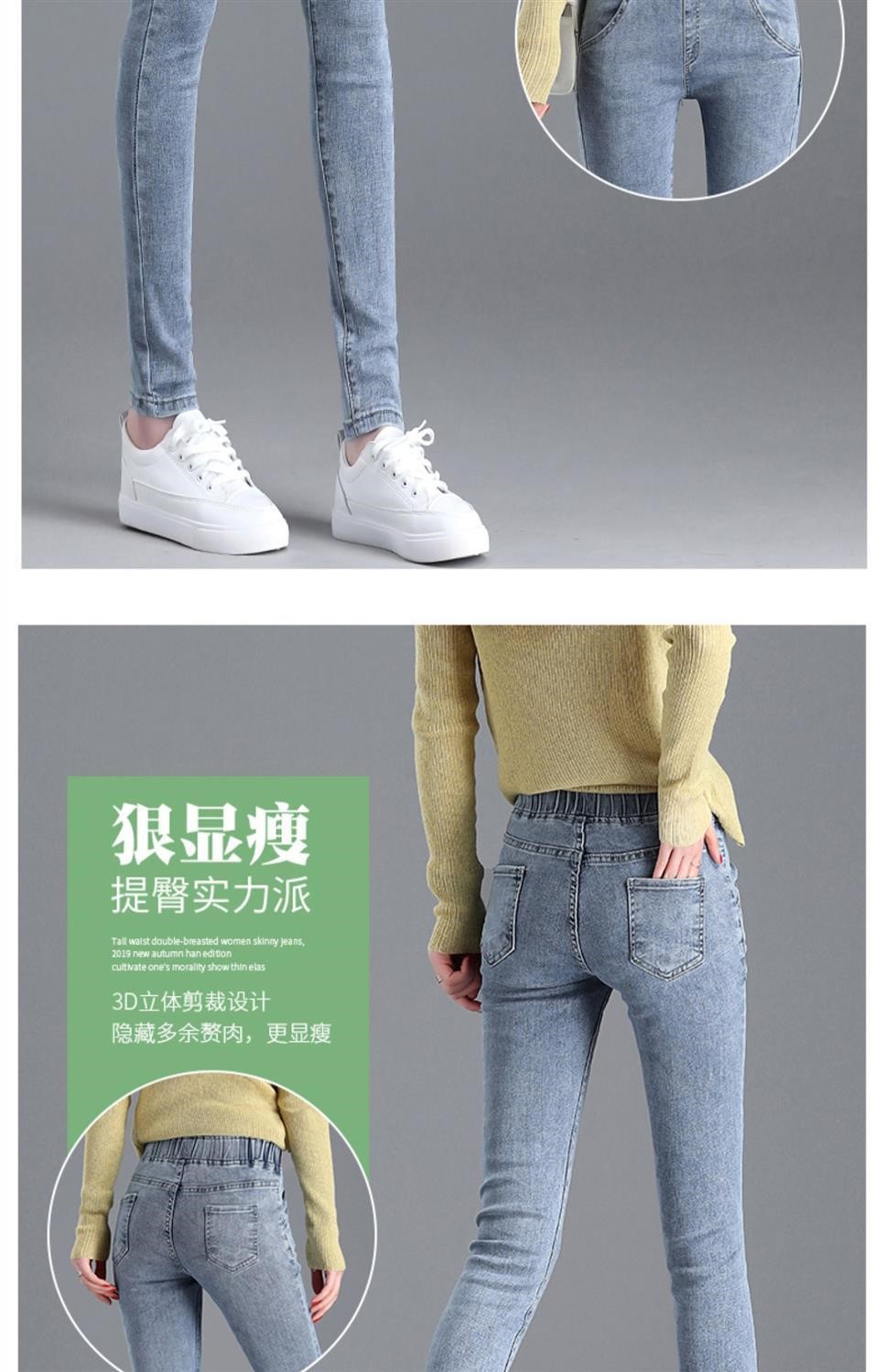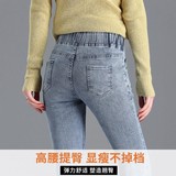 Демисезонные флисовые джинсы с начесом, приталенные штаны, универсальный карандаш, эластичная талия, в корейском стиле, высокая талия