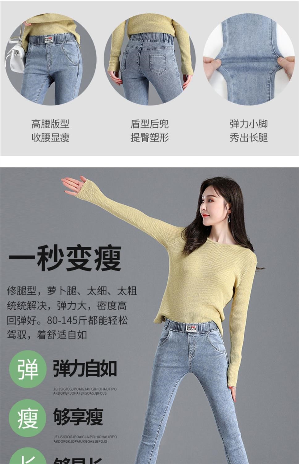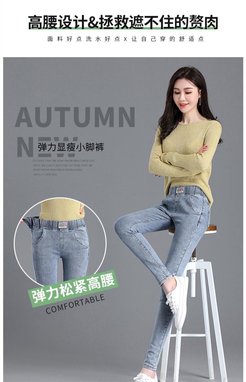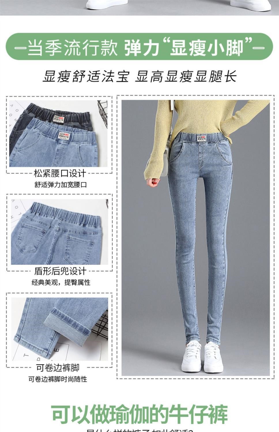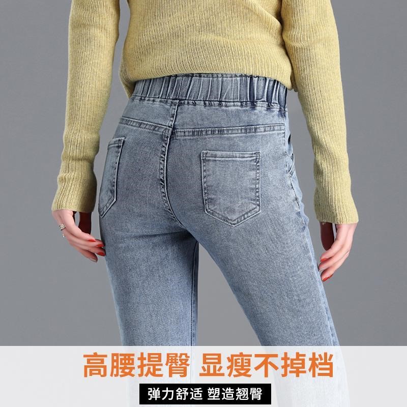 Демисезонные флисовые джинсы с начесом, приталенные штаны, универсальный карандаш, эластичная талия, в корейском стиле, высокая талия