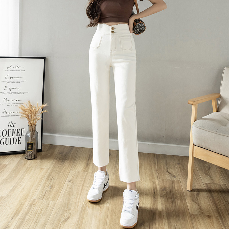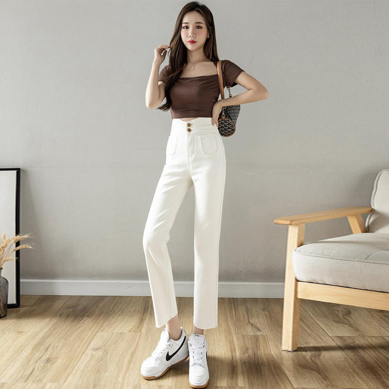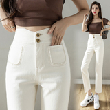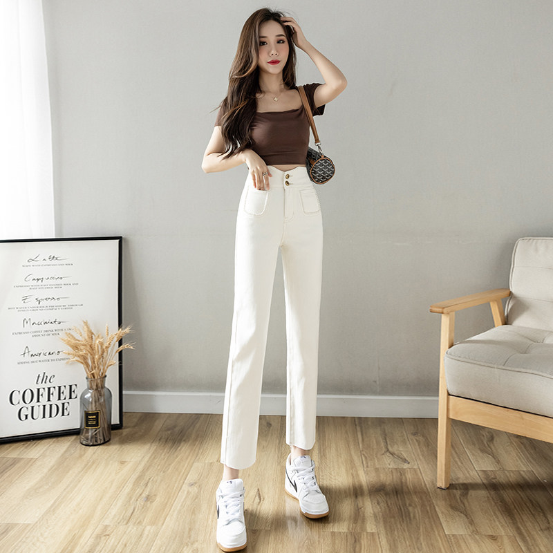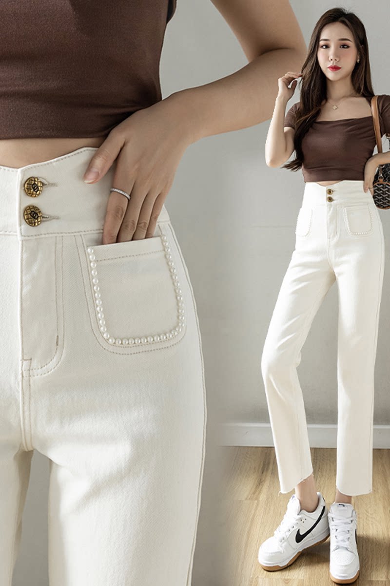 Белые летние прямые свободные джинсы, дизайнерские приталенные штаны для отдыха, 2023, тренд сезона