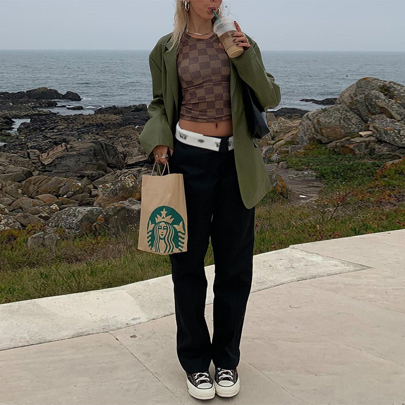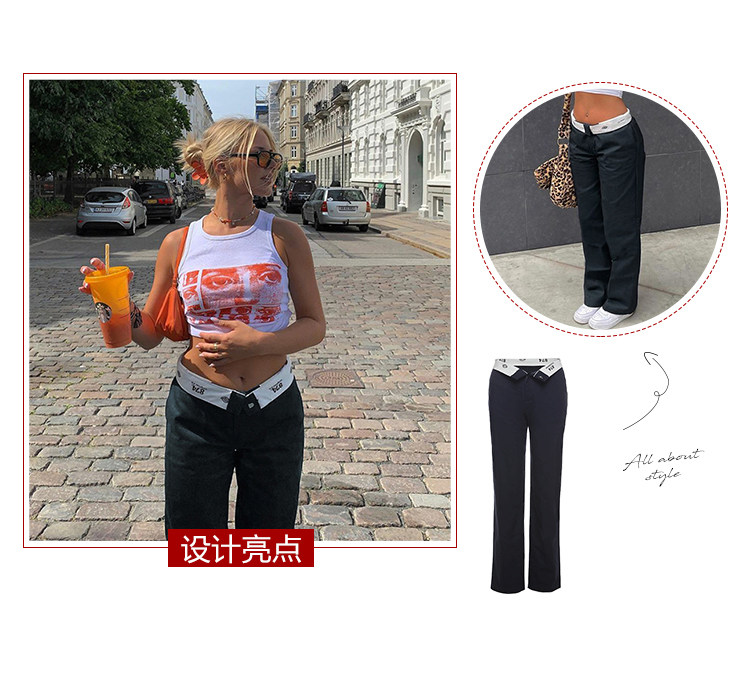 Tide, трендовые джинсы, штаны, в американском стиле, высокая талия, по фигуре, свободный прямой крой
