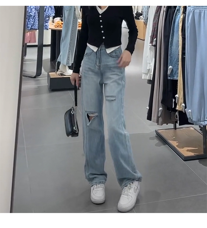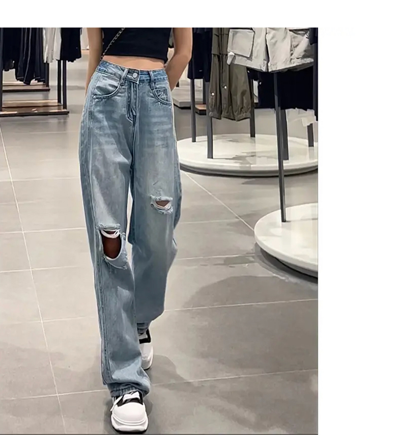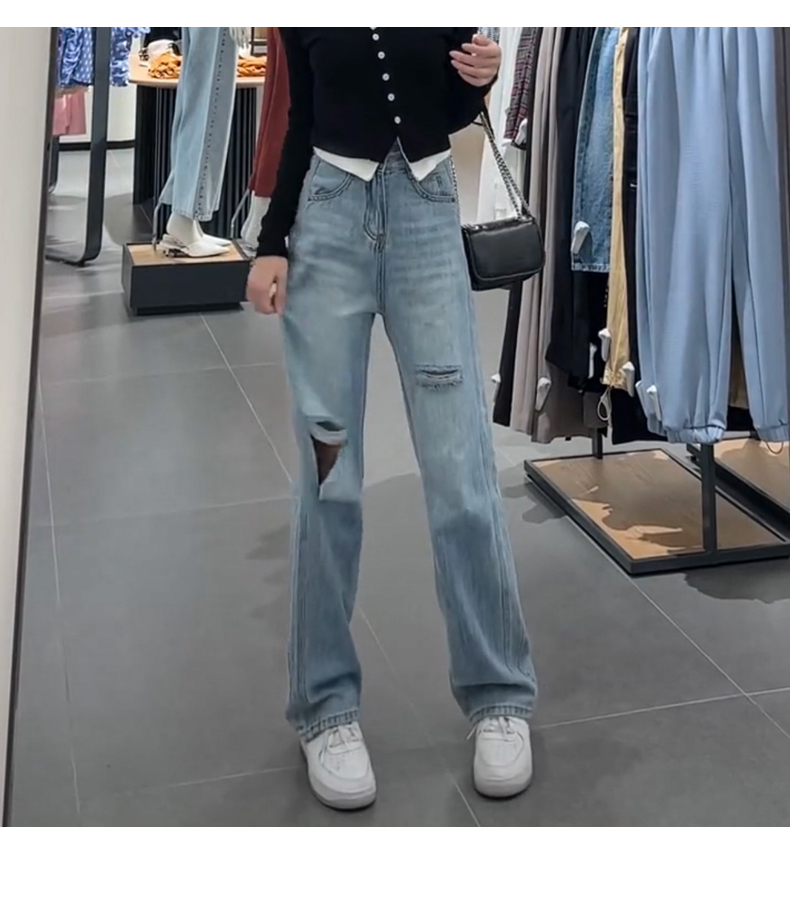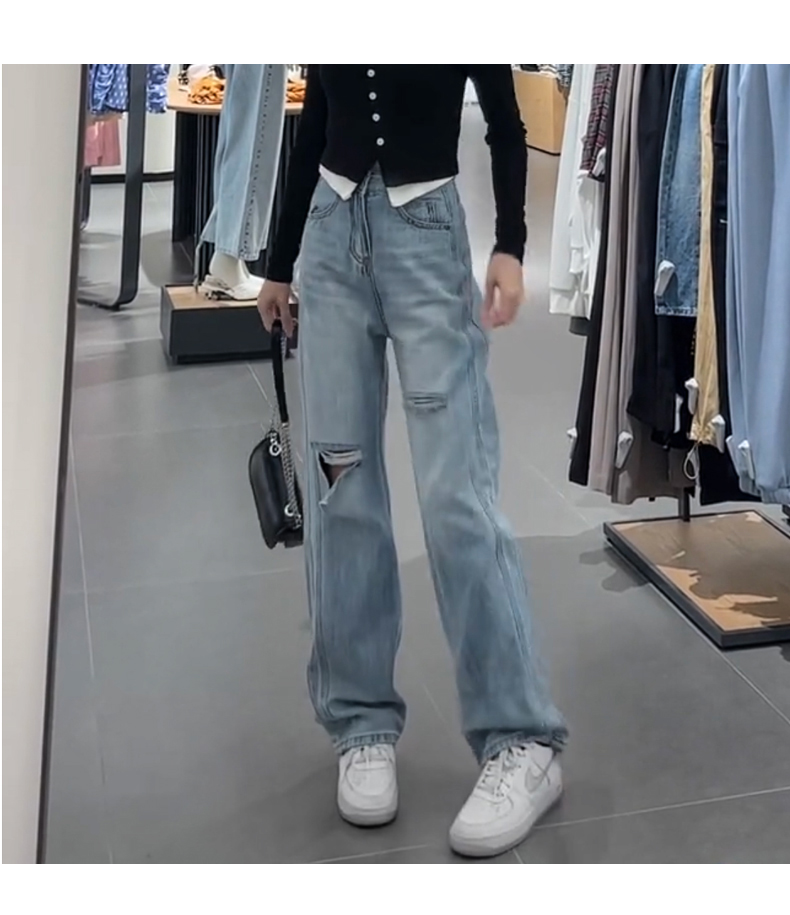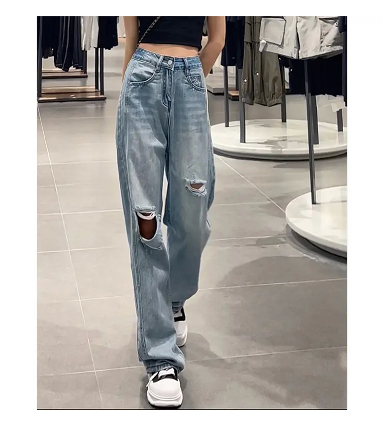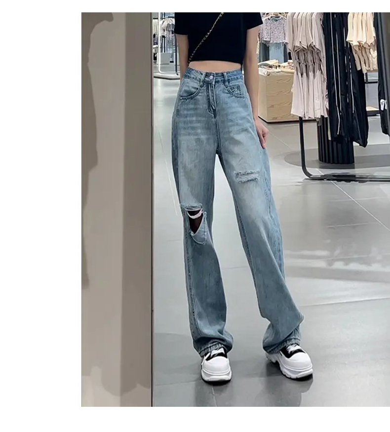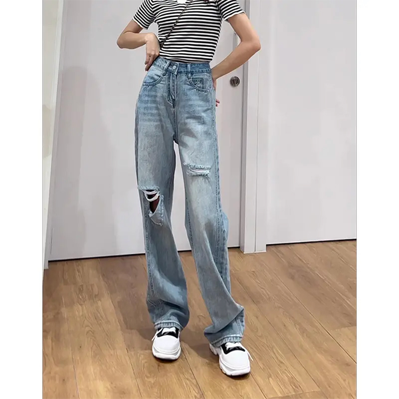 Джинсы, весенние летние сексуальные штаны, высокая талия, свободный прямой крой, по фигуре