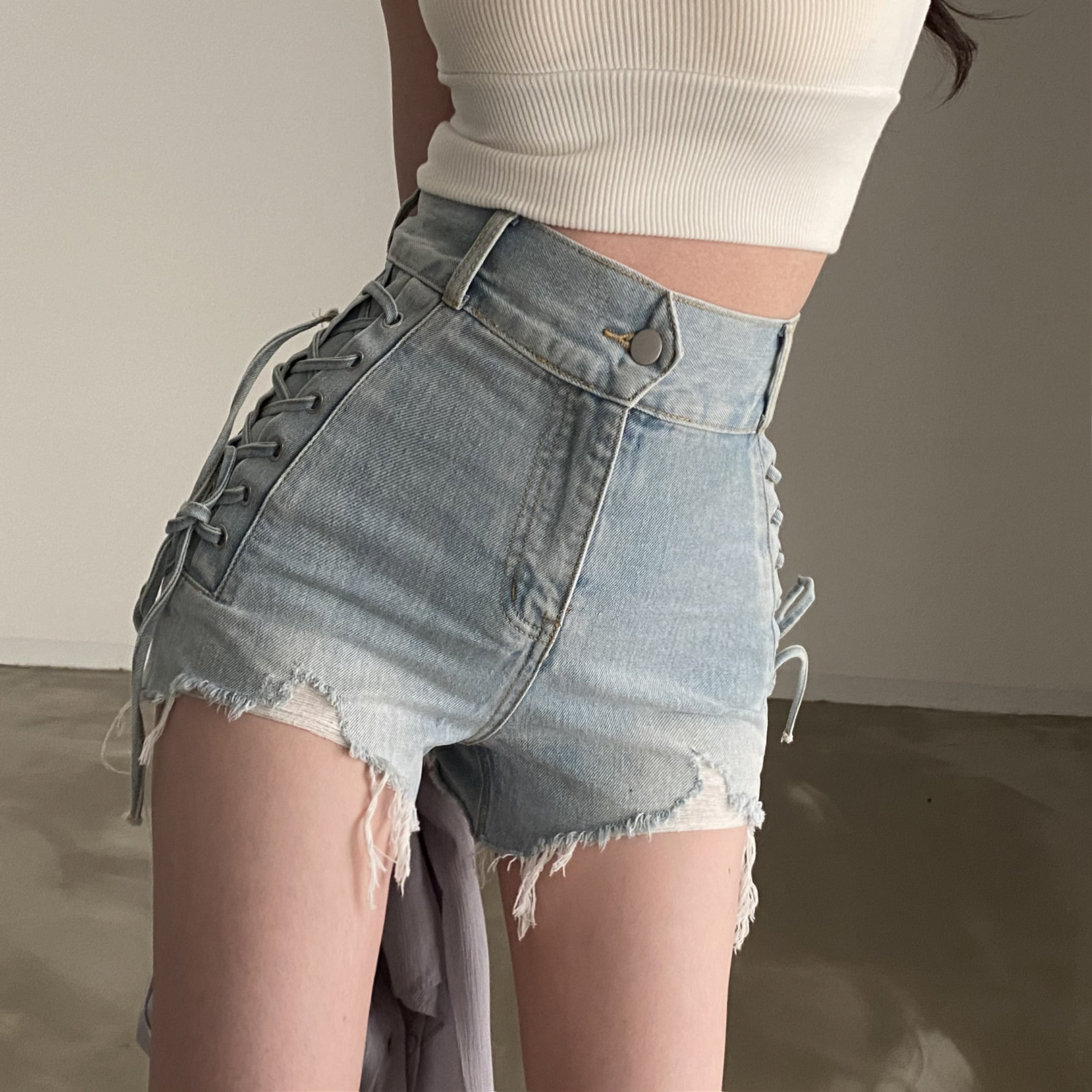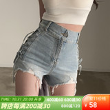 Рокмор Ханфенг сладкая и прохладная сестра сломана, приносит бианские джинсовые шорты ниша с высокой талией высокая талия и тонкие горячие брюки лето