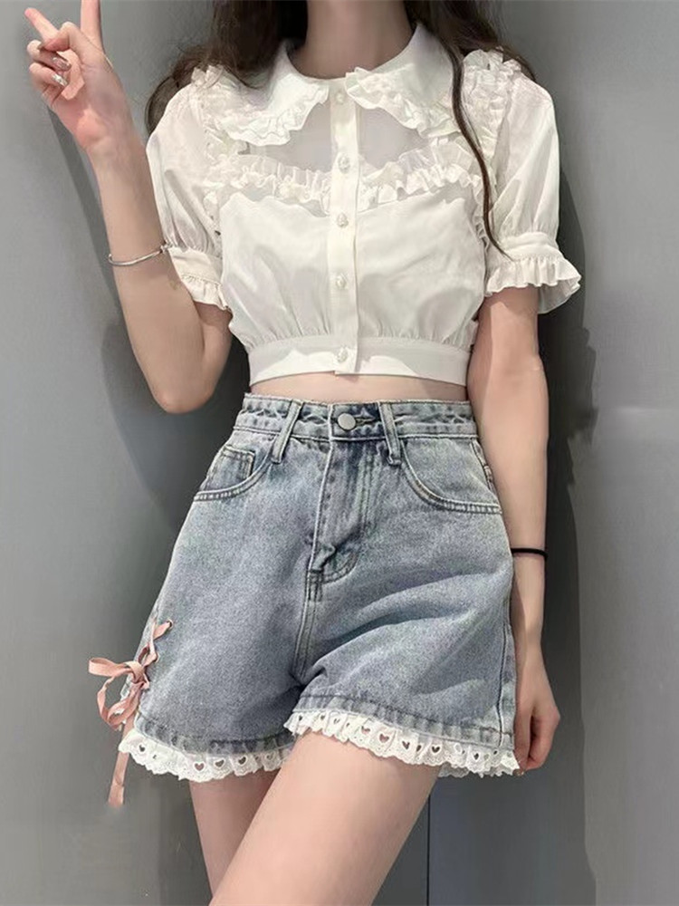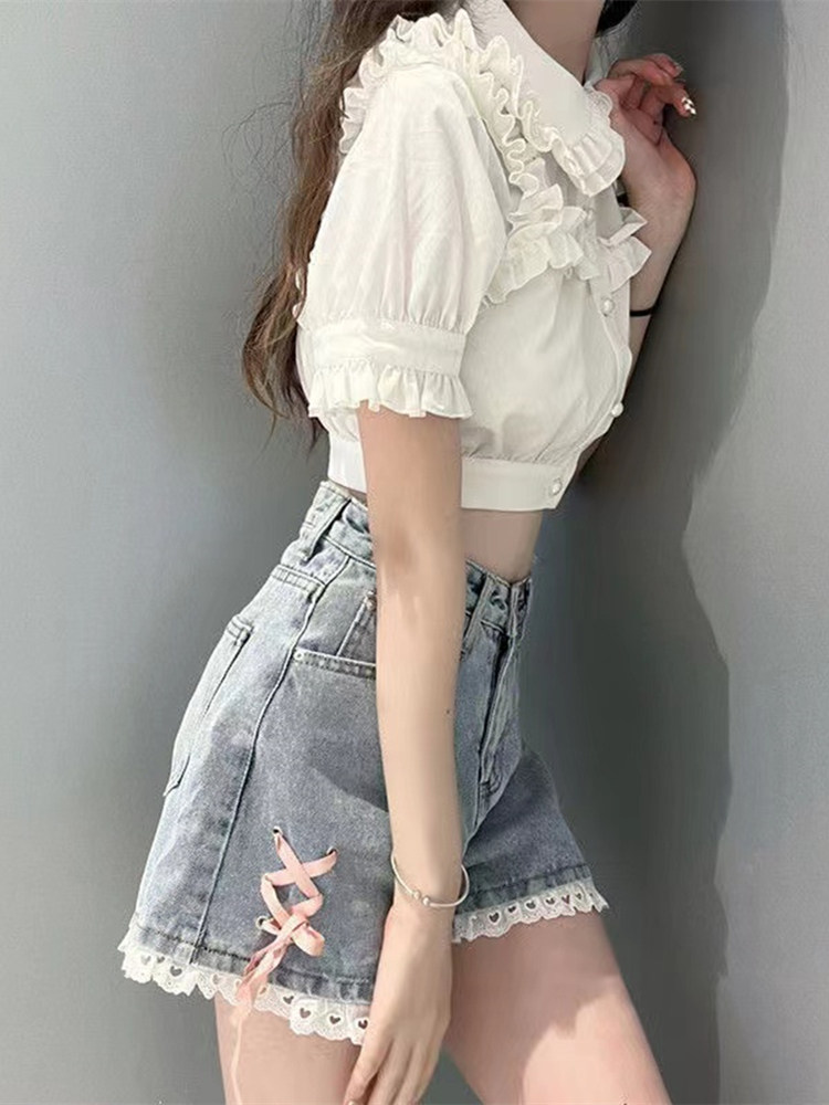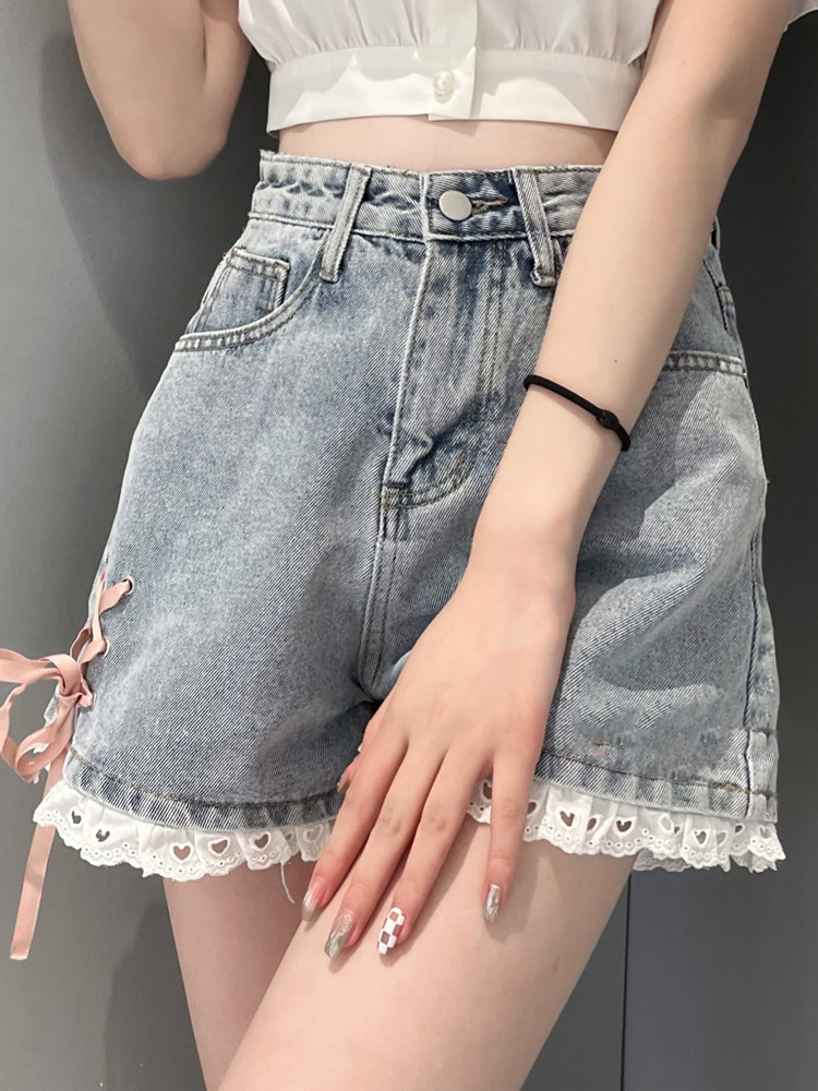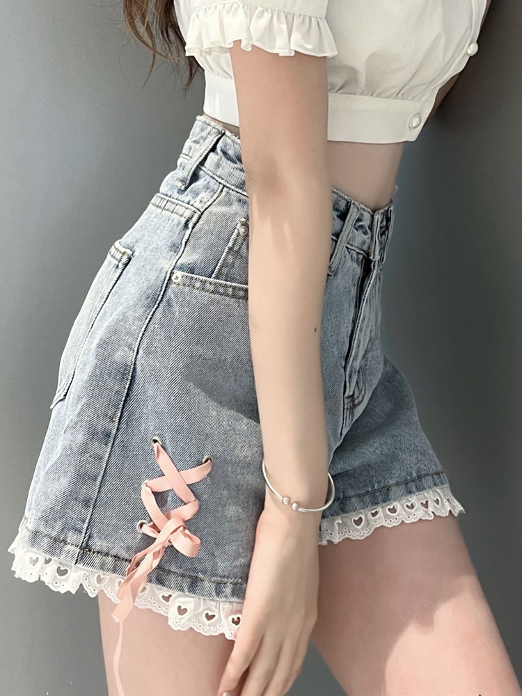 Джинсовая юбка, шорты, японские летние сексуальные кружевные штаны, высокая талия, свободный крой, кружевное платье