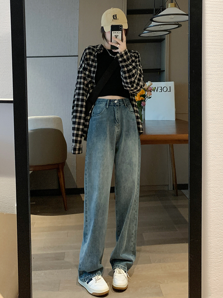 Осенние джинсы, приталенные штаны, коллекция 2023, большой размер, высокая талия, свободный прямой крой