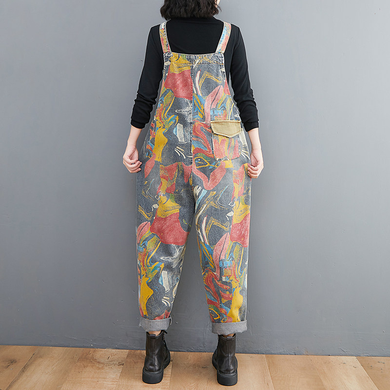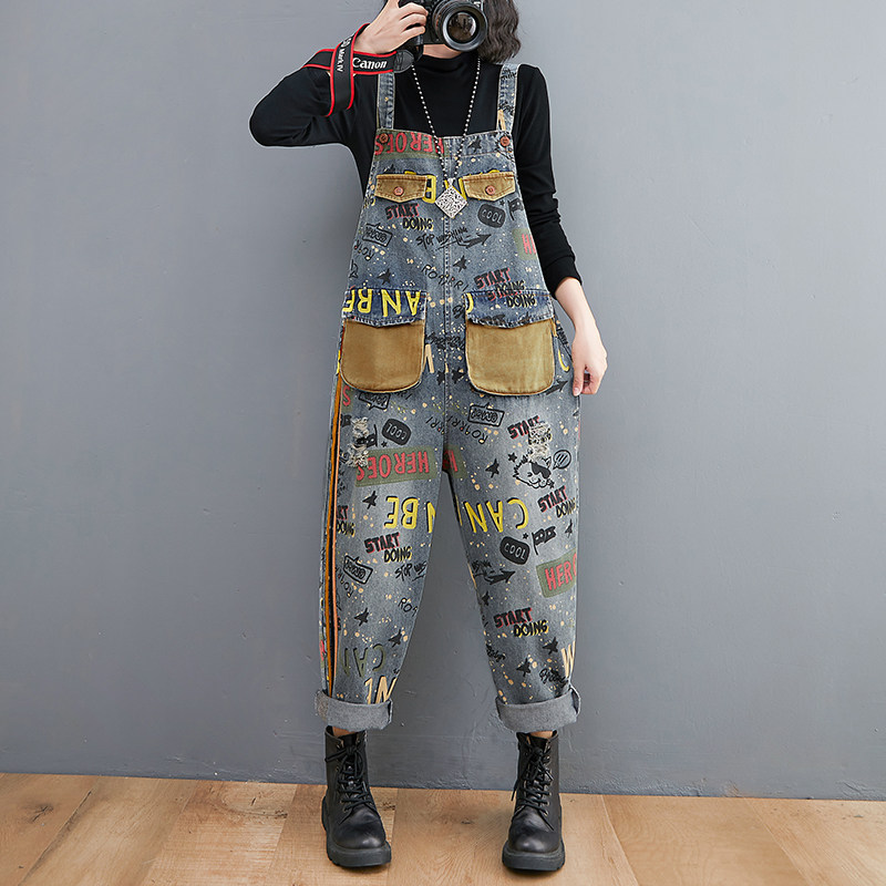 Демисезонные штаны для отдыха, джинсовый комбинезон, большой размер, эффект подтяжки, подходит для полных девушек