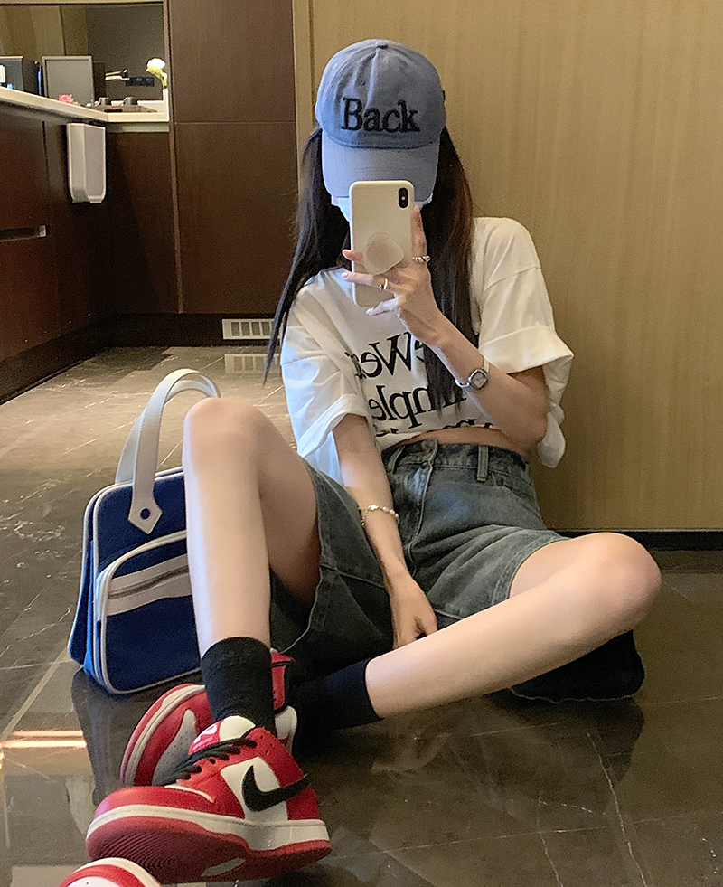 Ретро джинсы, штаны, шорты, эластичная талия, оверсайз, по фигуре