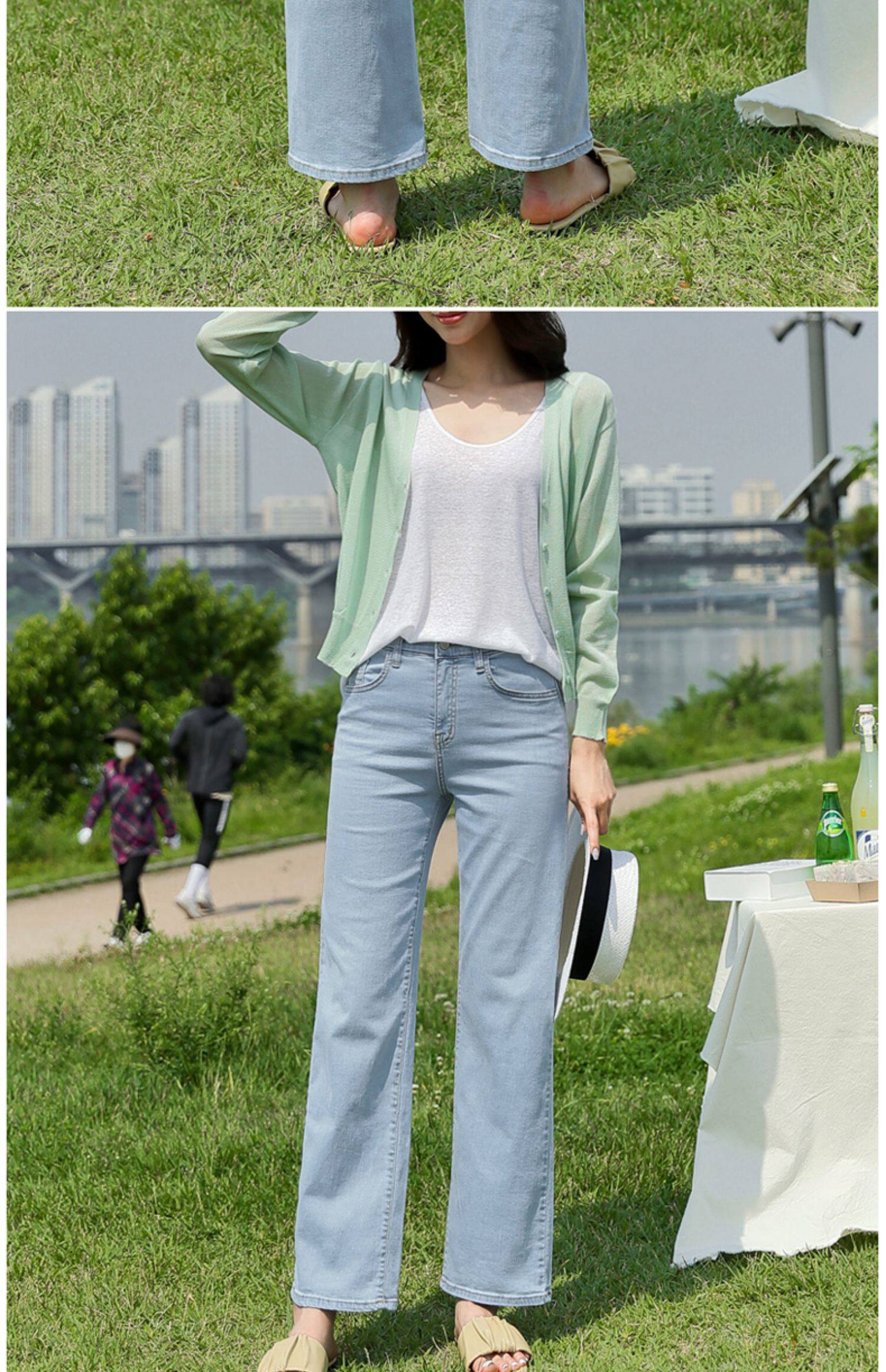 - Светлые ультратонкие тонкие длинные штаны