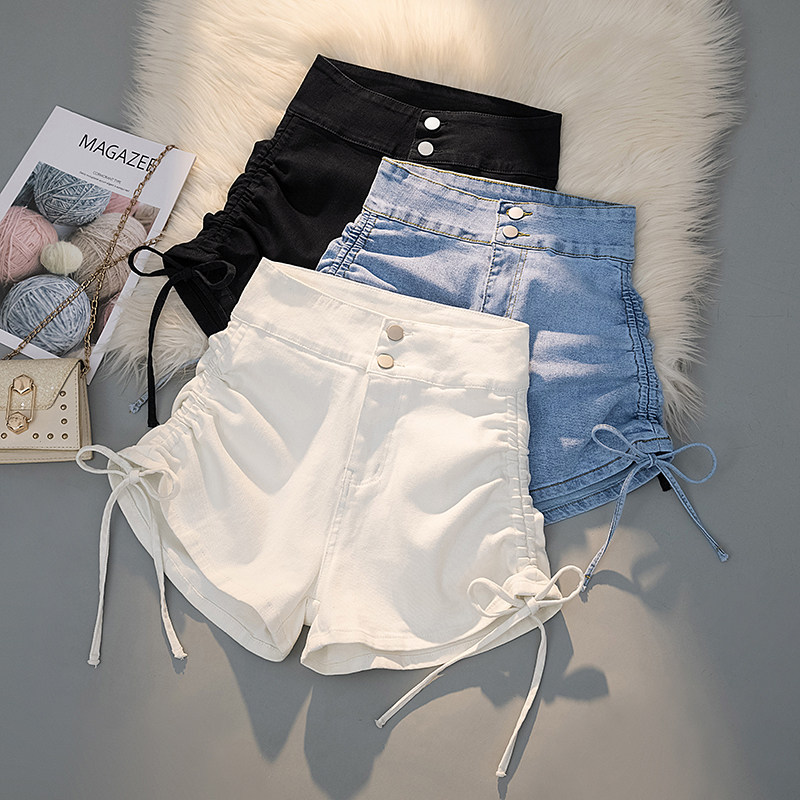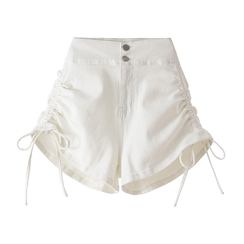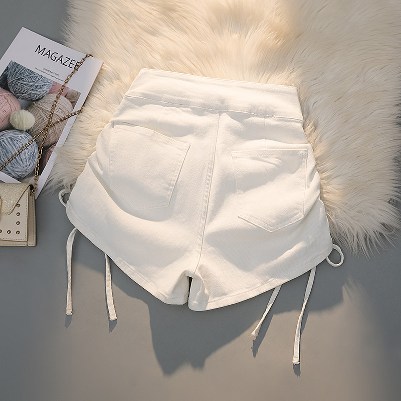Белая цветная джинсовая юбка, шорты, штаны, дизайнерский ремень, высокая талия, 2025 года, на шнурках, тренд сезона, в обтяжку