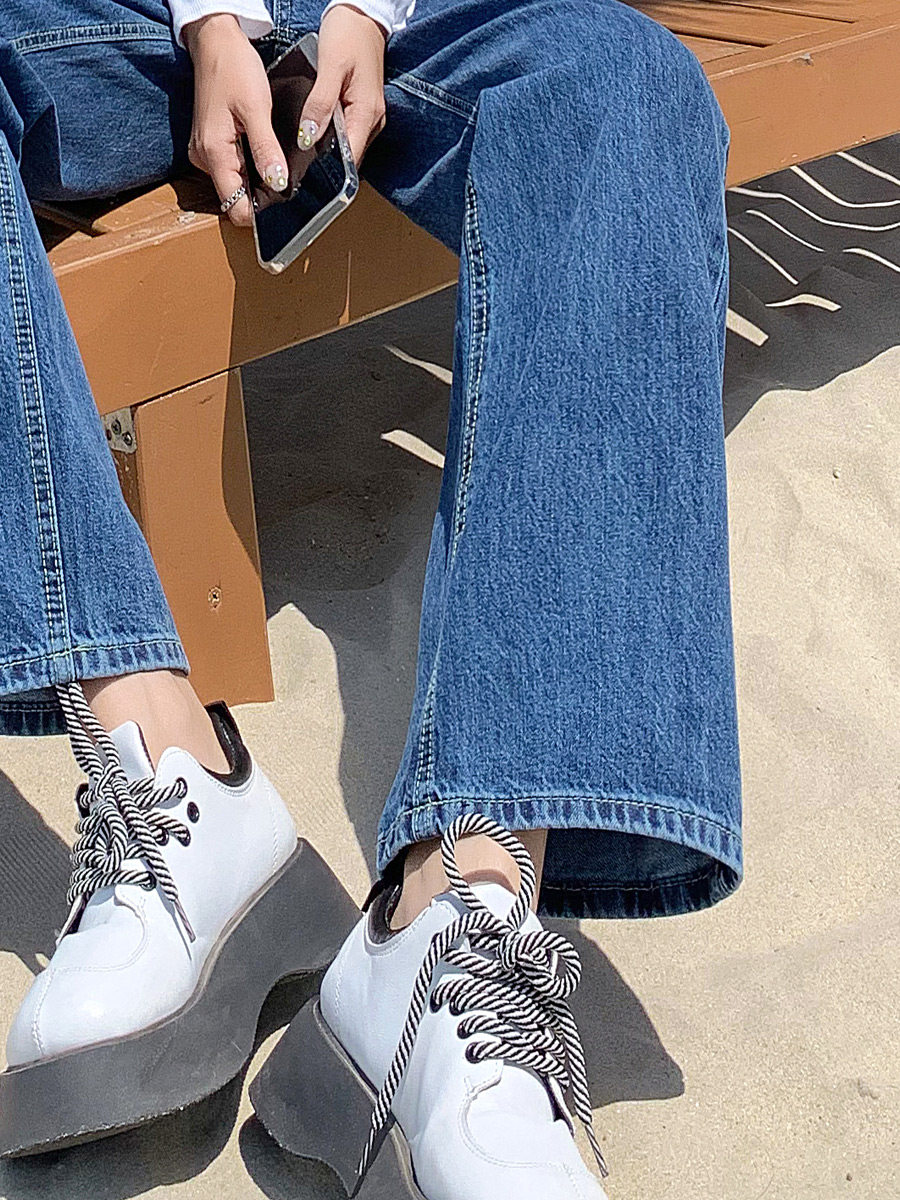 Джинсы, осенние штаны, леггинсы, высокая талия, коллекция 2023, свободный прямой крой, подходит для подростков