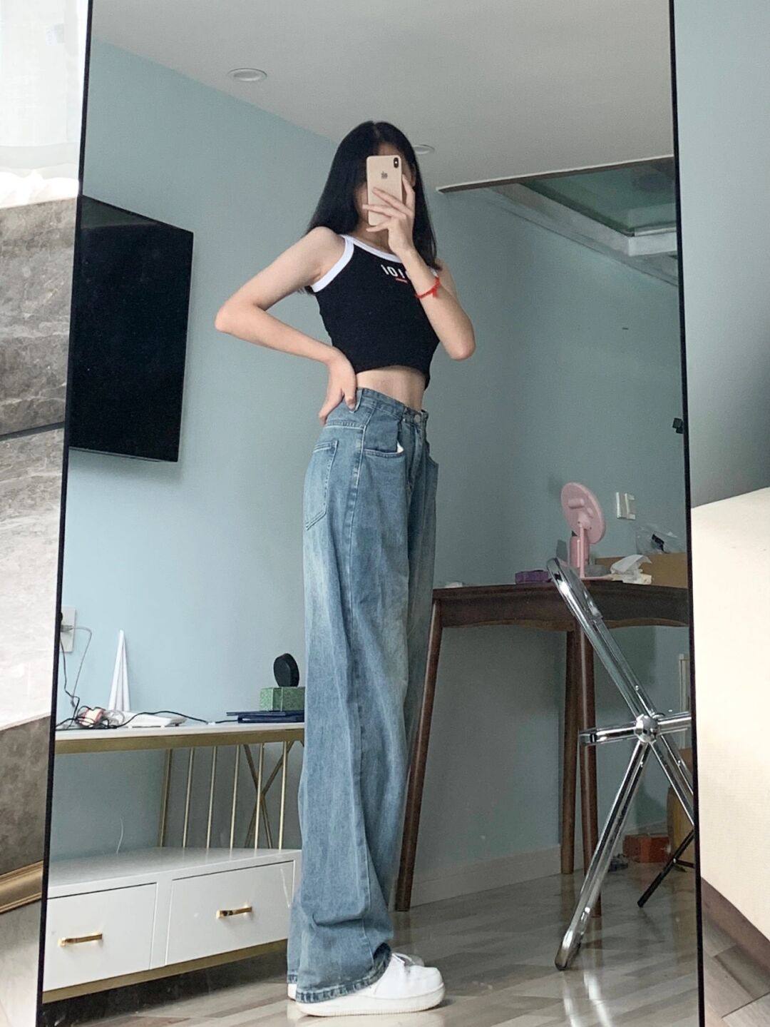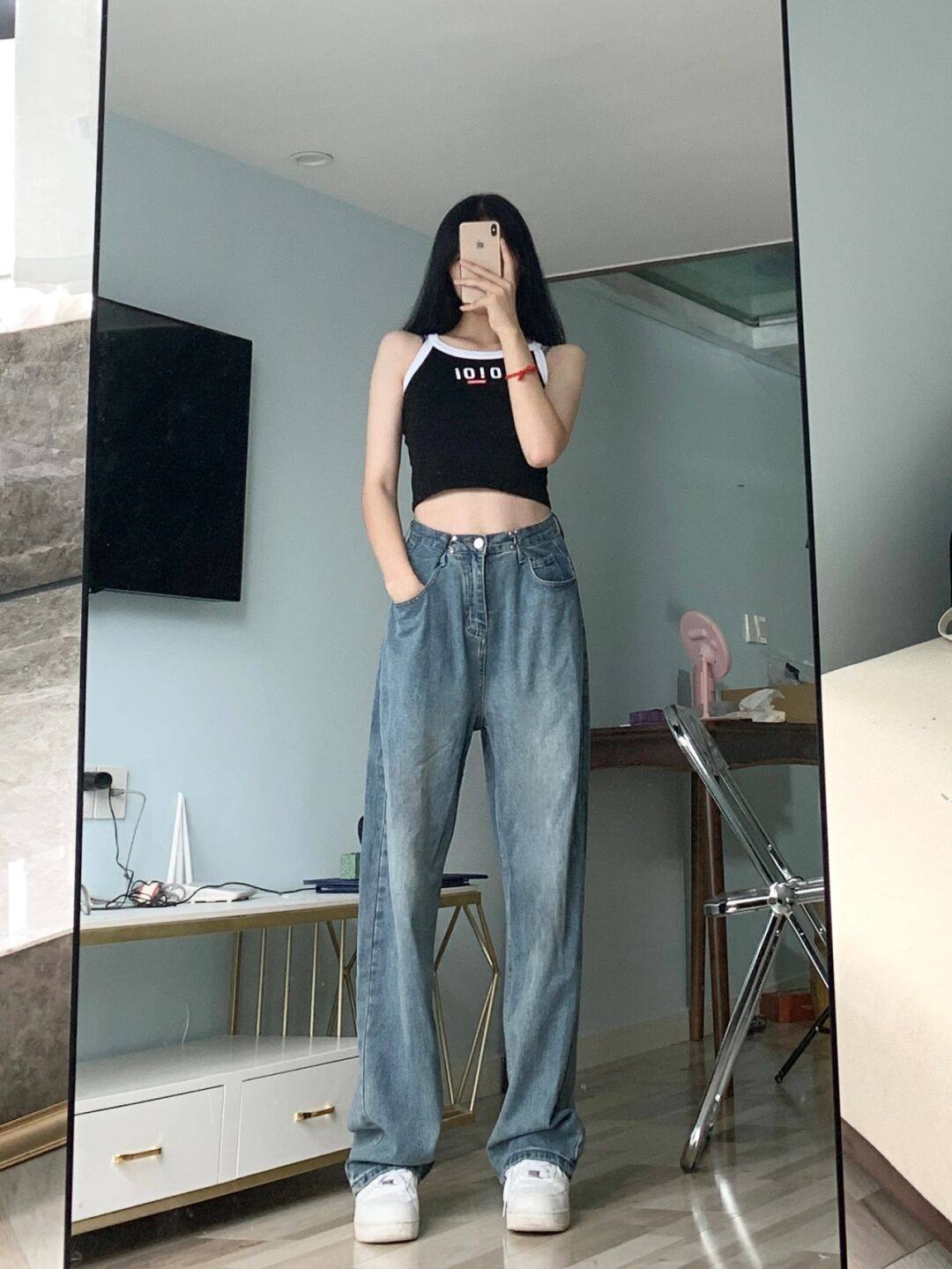 Tide, джинсы, тонкие штаны, свободный прямой крой, высокая талия