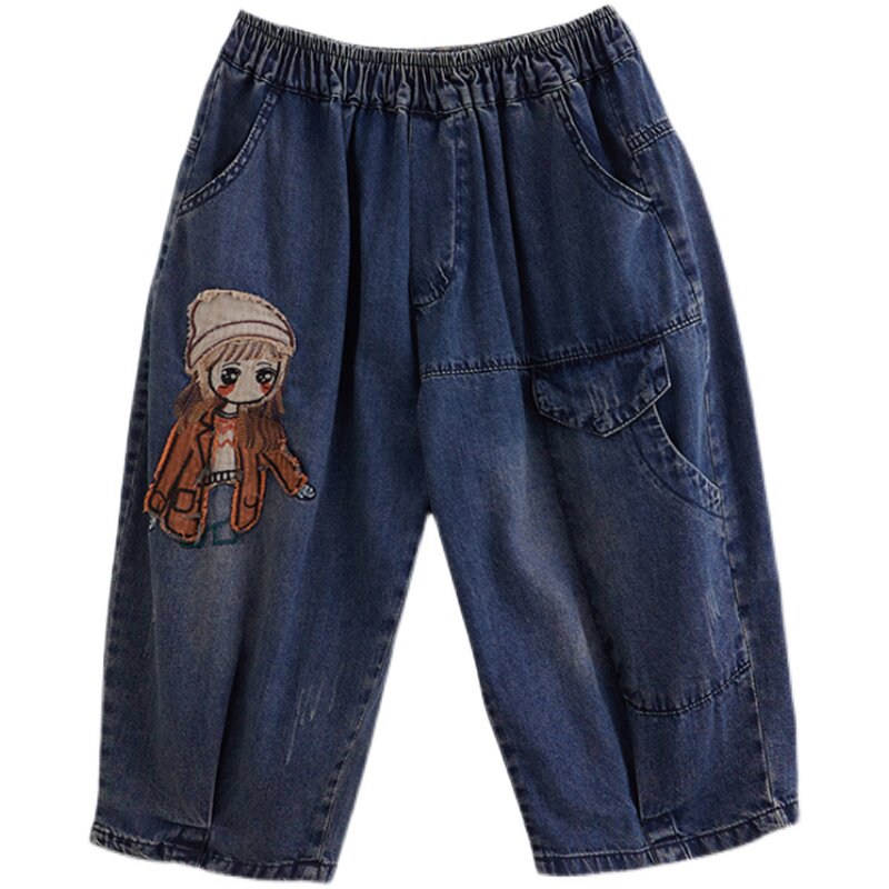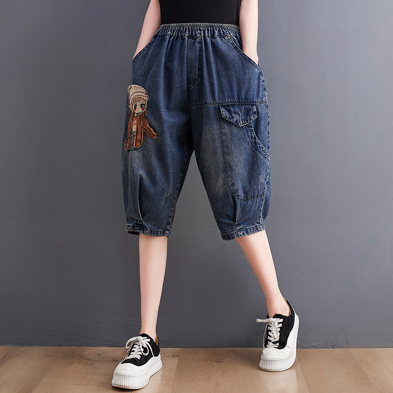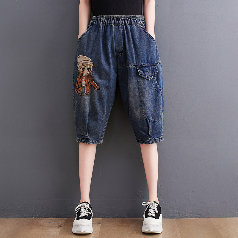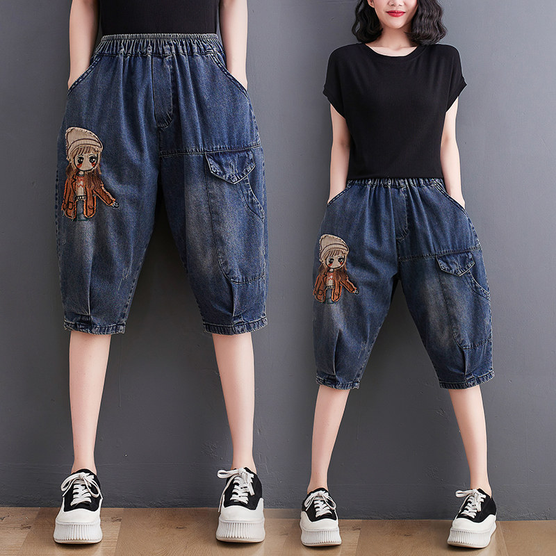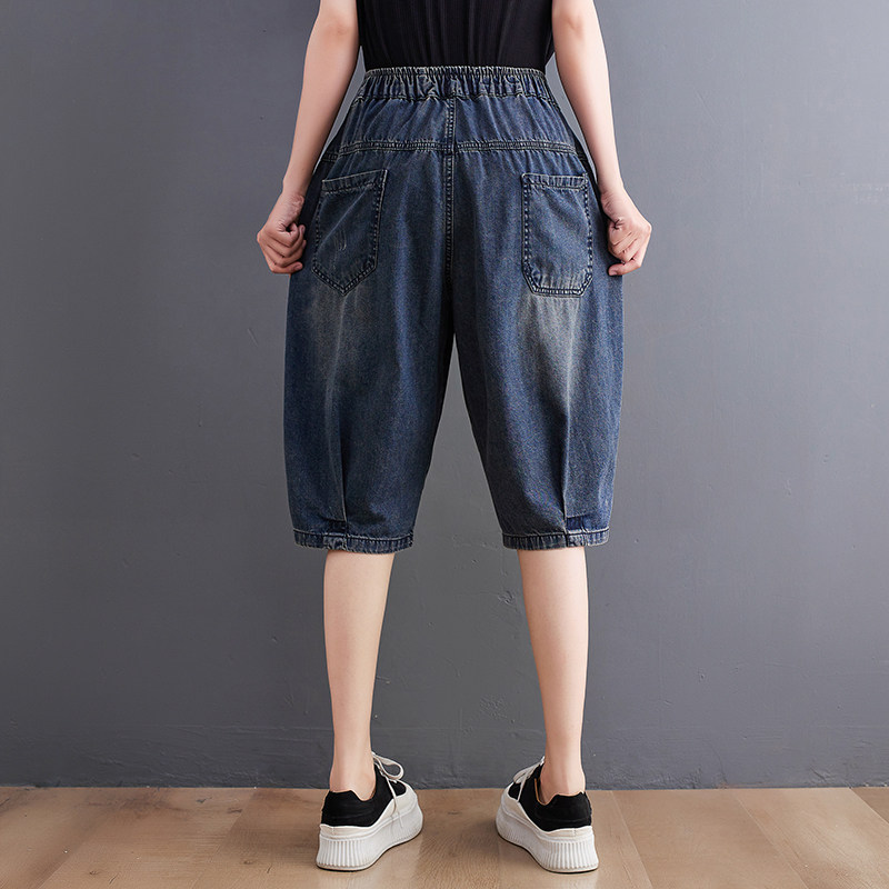 Джинсовые летние штаны, шорты для отдыха, подходит для полных девушек, свободный крой, эластичная талия