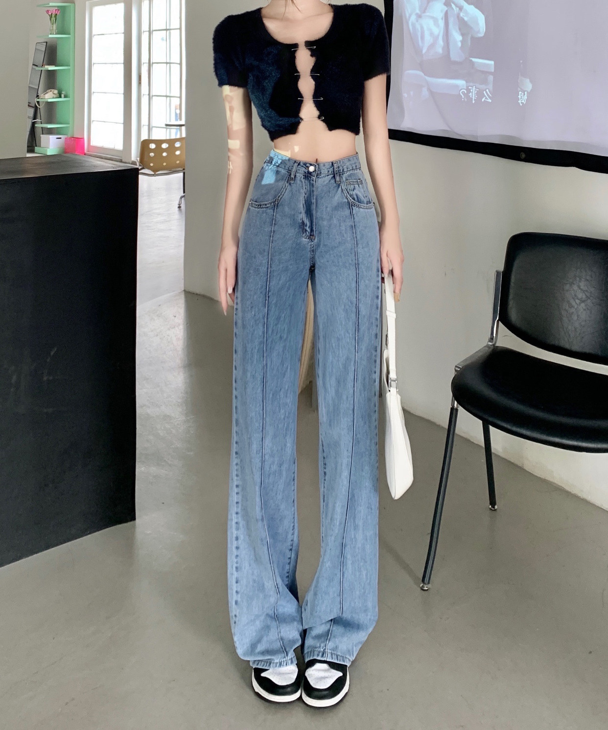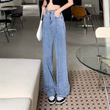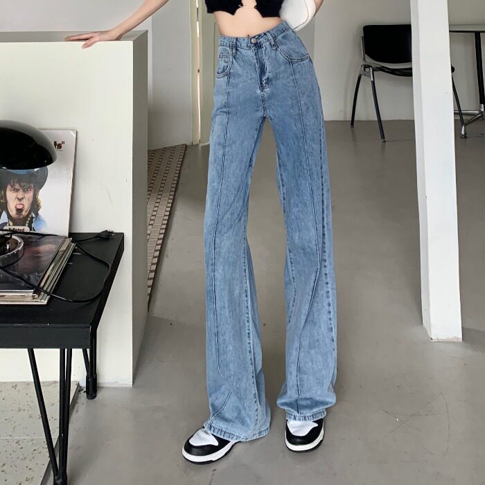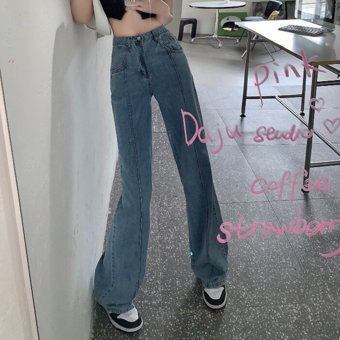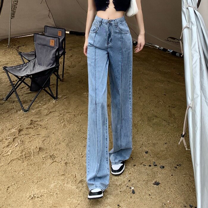 Летние тонкие дизайнерские джинсы, шелковые штаны, свободный прямой крой, высокая талия, оверсайз
