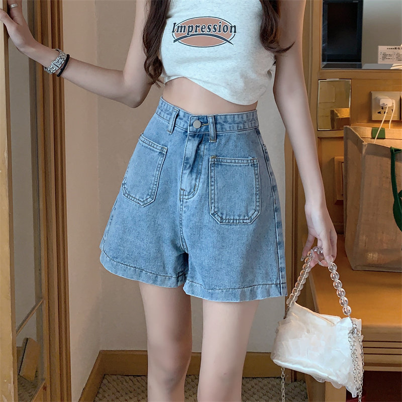 Джинсы, шорты, тонкие штаны, высокая талия, свободный прямой крой, большой размер