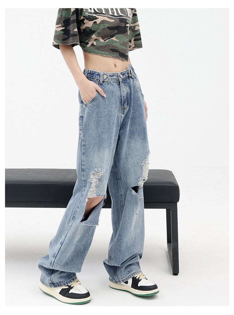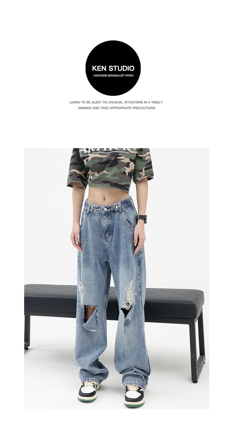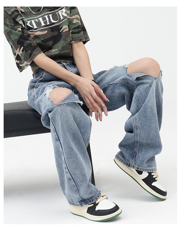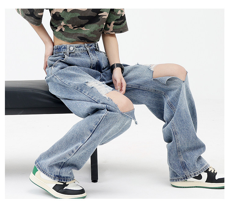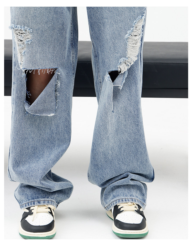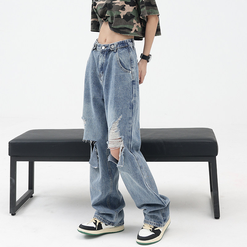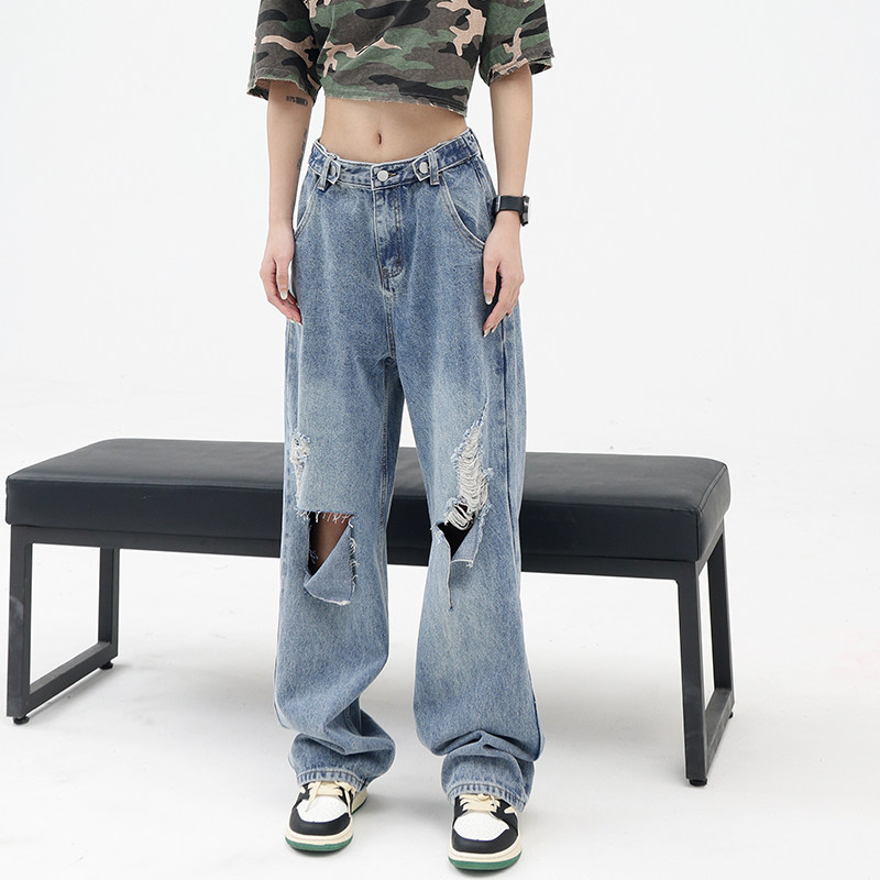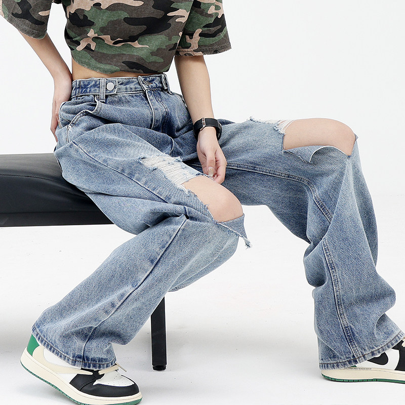 Синие джинсы, штаны, градиент, свободный прямой крой