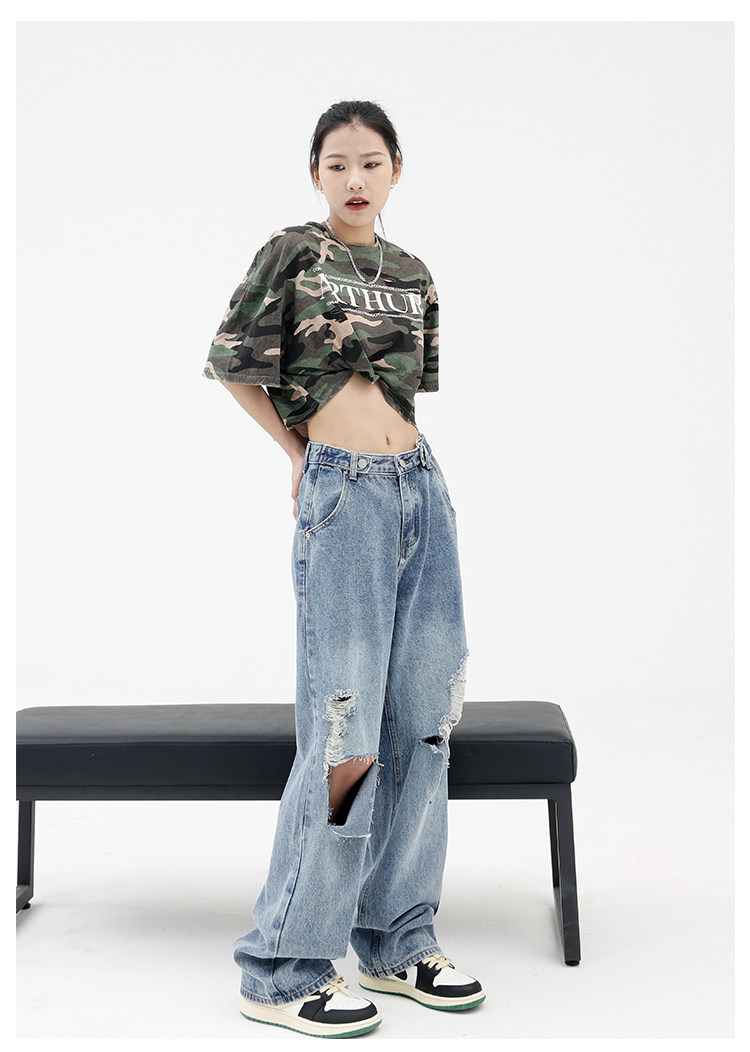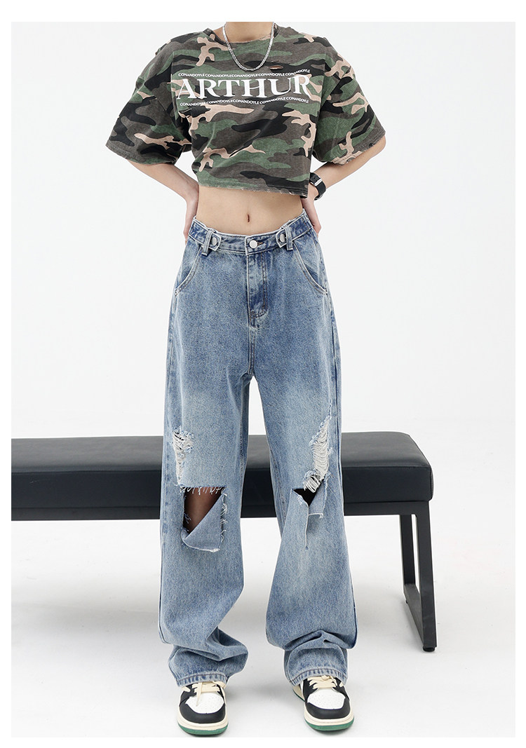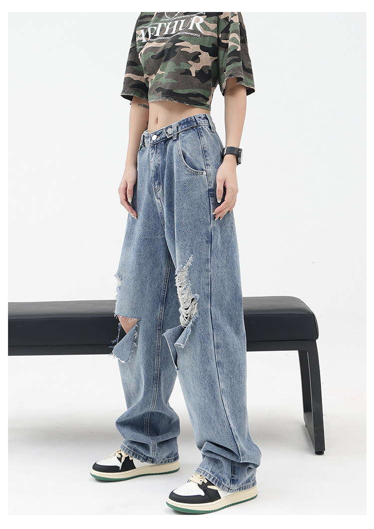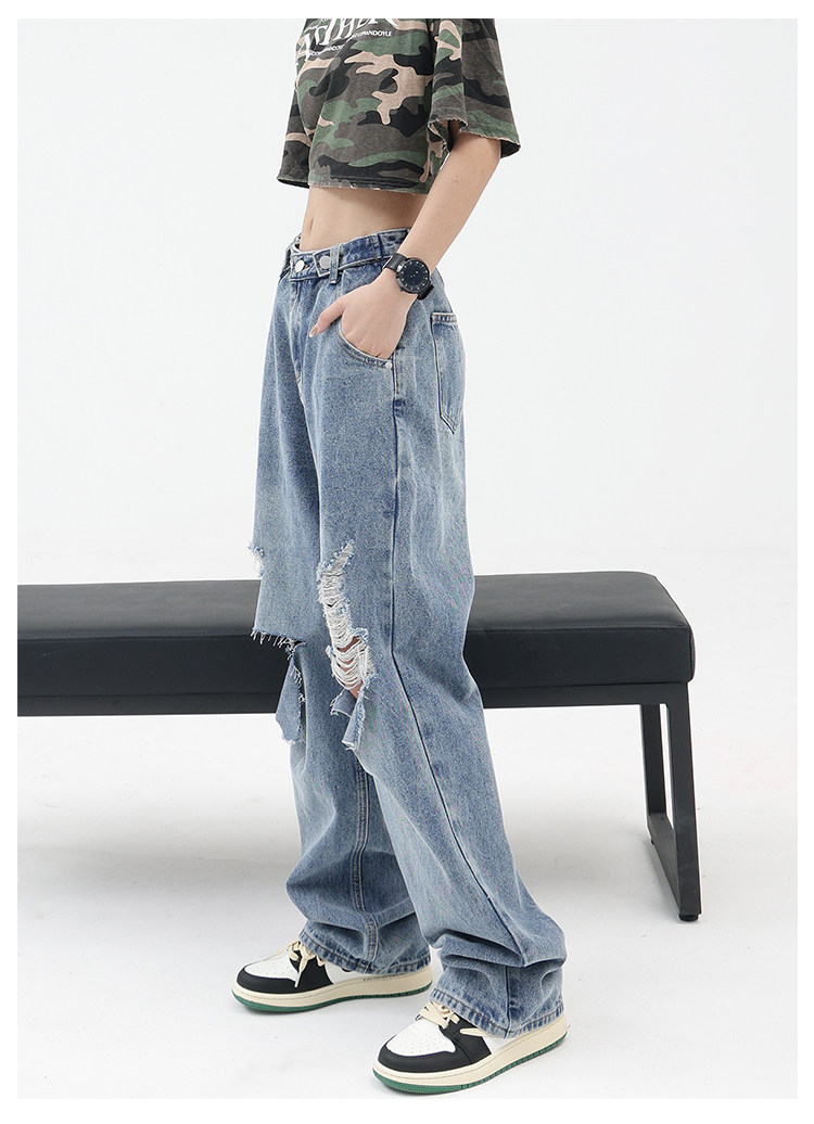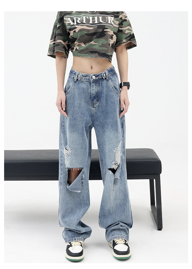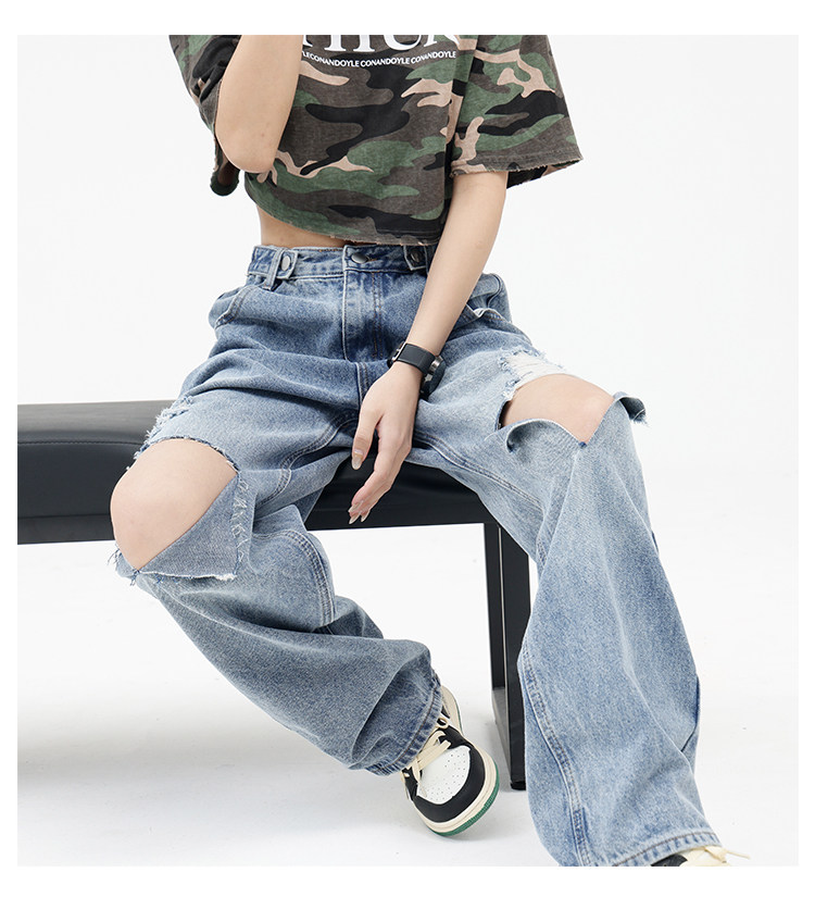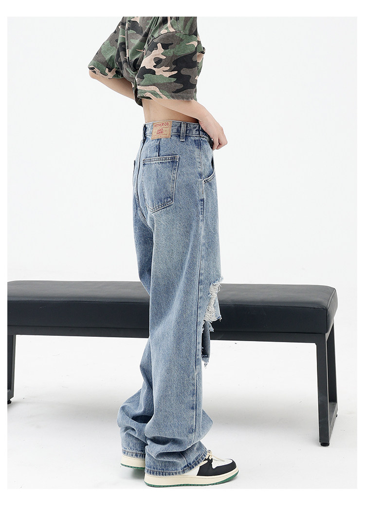 Синие джинсы, штаны, градиент, свободный прямой крой