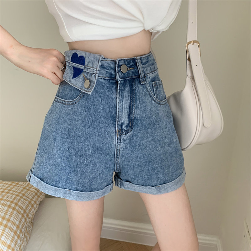 Летние джинсы, штаны, шорты, высокая талия, коллекция 2022, с вышивкой, А-силуэт