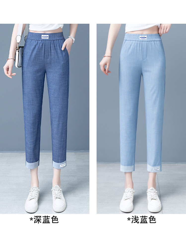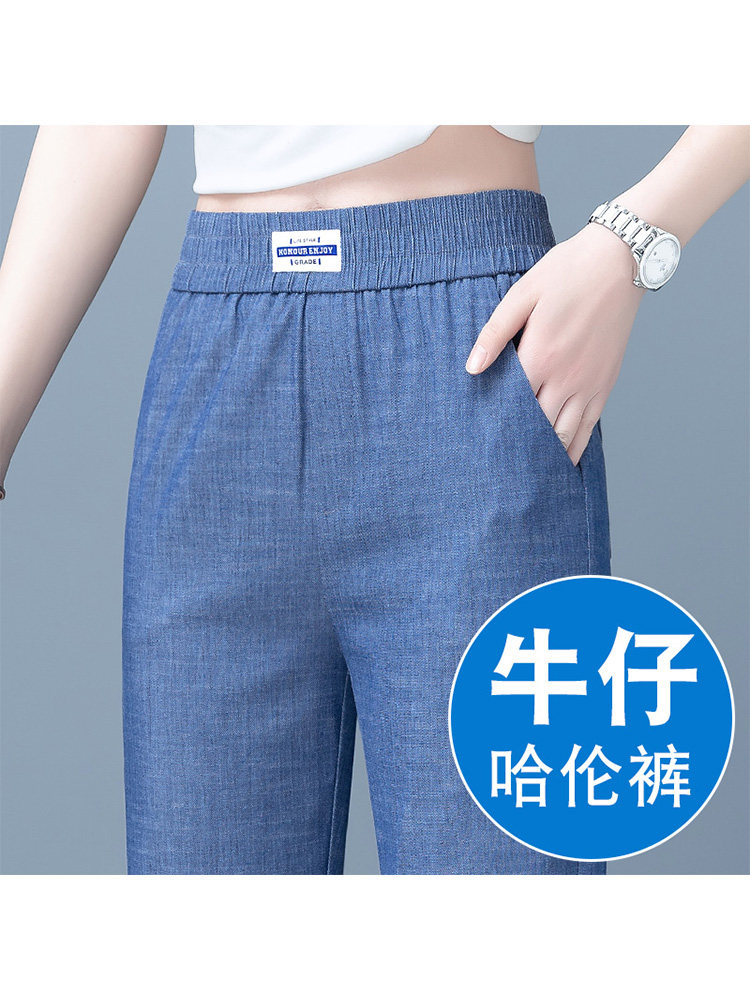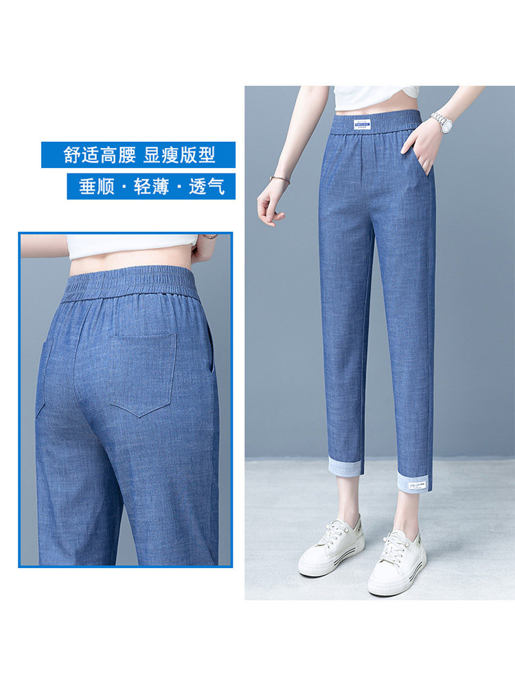 Джинсы, летние шелковые ультратонкие тонкие штаны, подходит для подростков, высокая талия