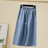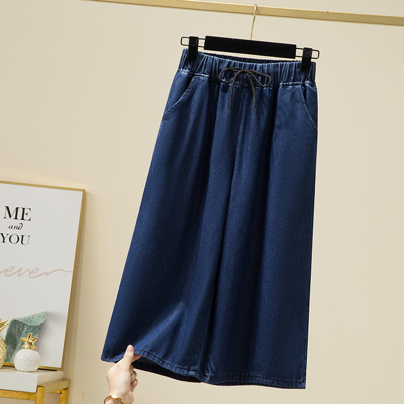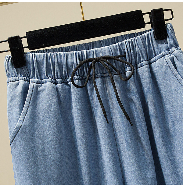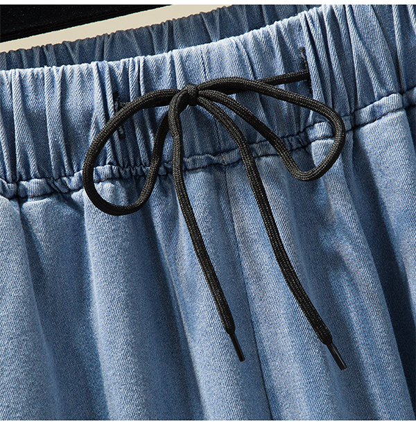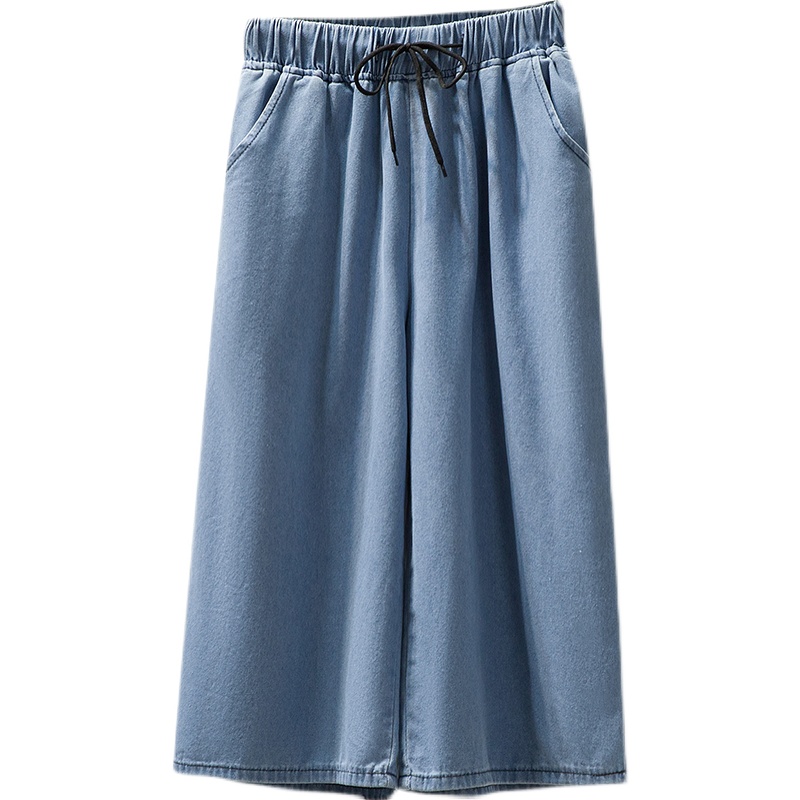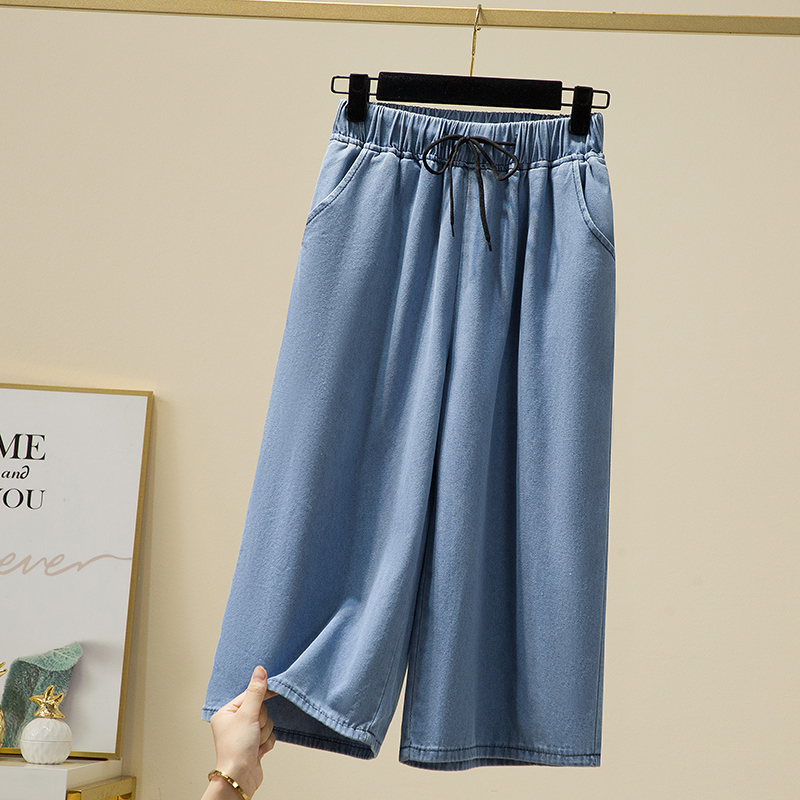 Брендовые летние тонкие джинсовые штаны, большой размер, эластичная талия, высокая талия, свободный прямой крой