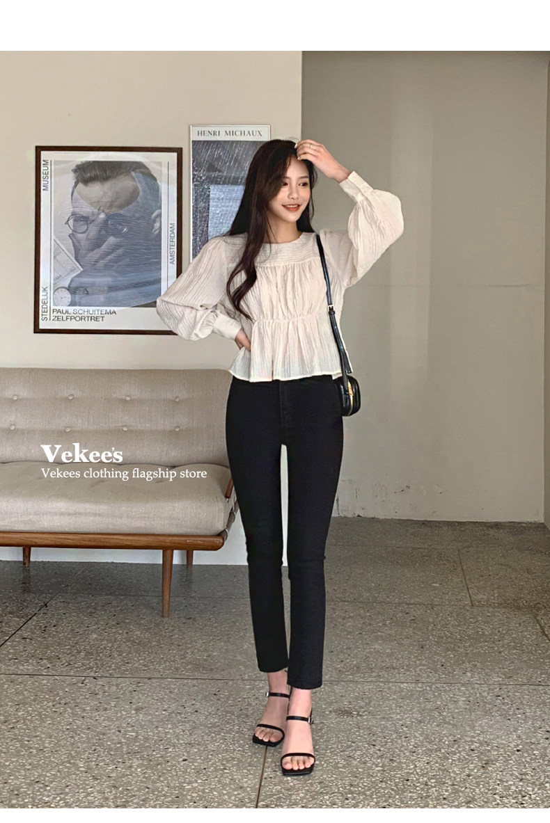 Осенние черные джинсы, приталенные штаны, 2023, высокая талия, свободный прямой крой