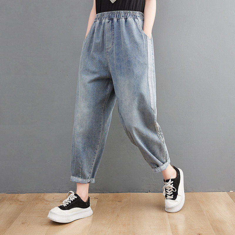 Приталенные джинсы, штаны, оверсайз, эластичная талия, по фигуре
