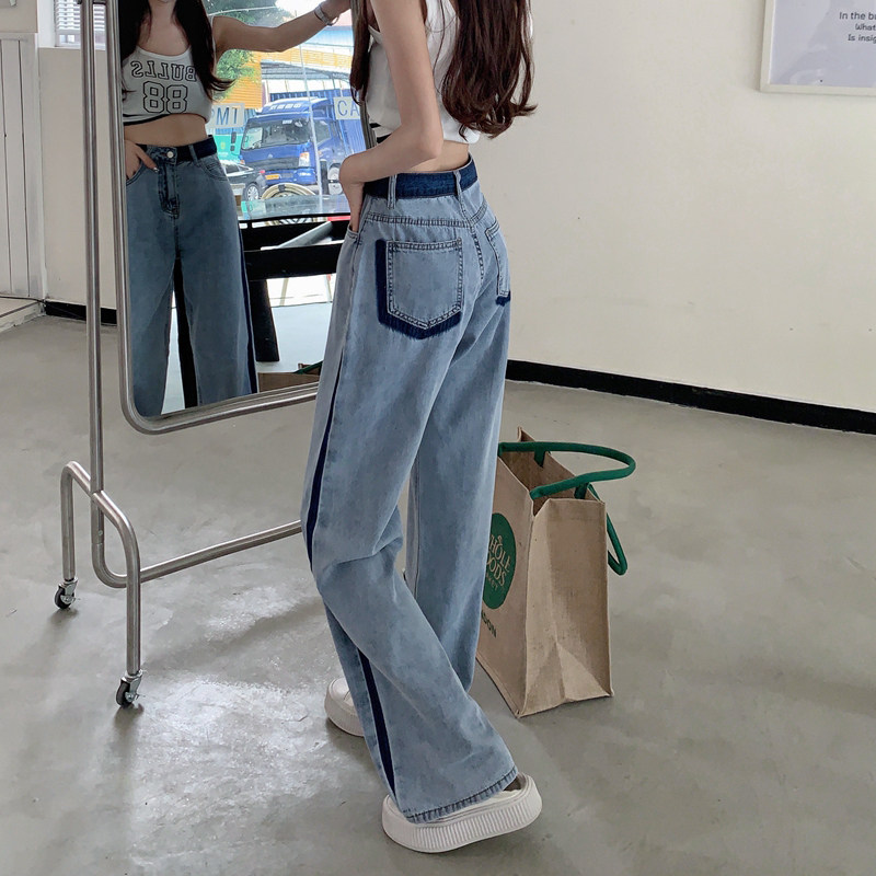 Дизайнерские прямые свободные джинсы, летние приталенные штаны, в корейском стиле, тренд сезона, высокая талия, свободный прямой крой