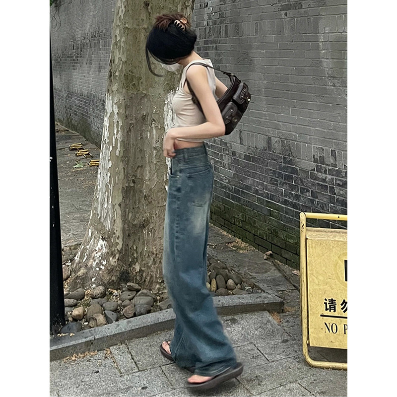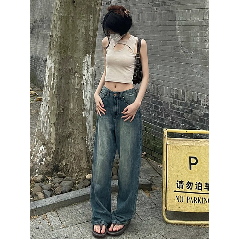 YOBARLA Ретро прямые свободные джинсы, весенние приталенные штаны, тренд сезона, высокая талия