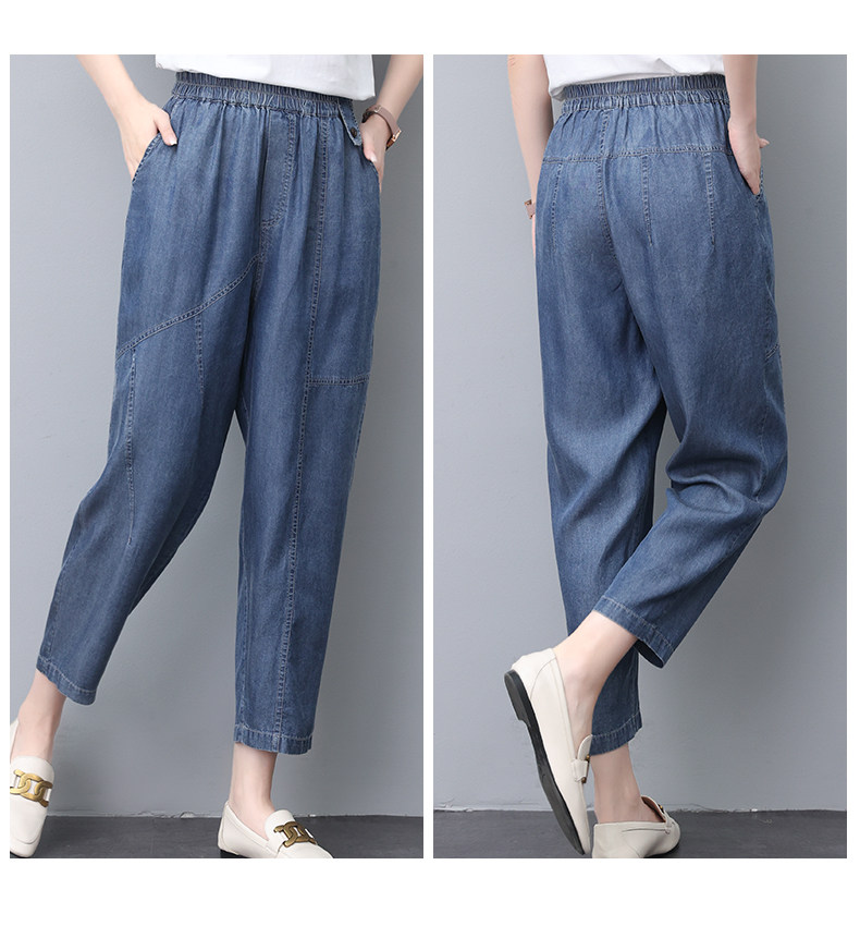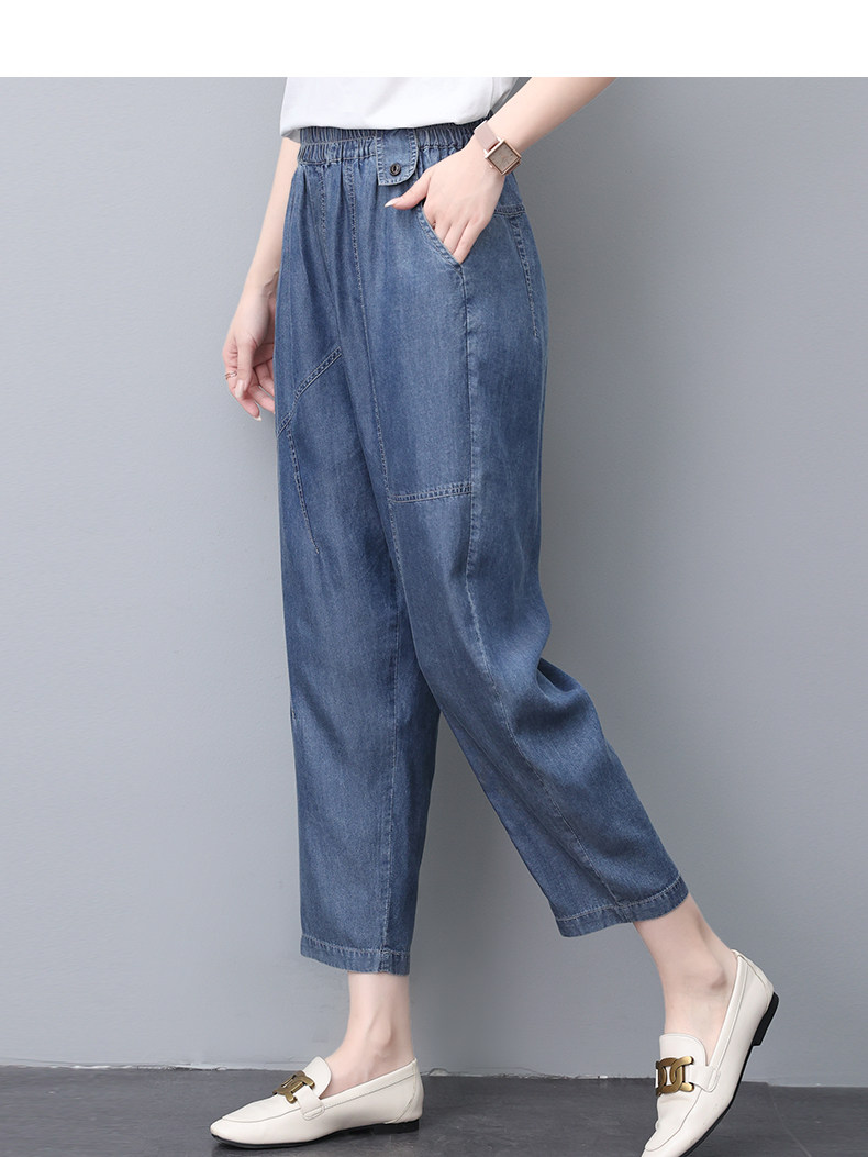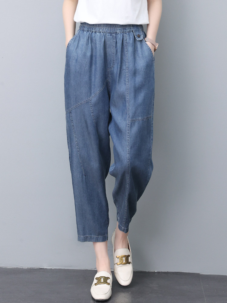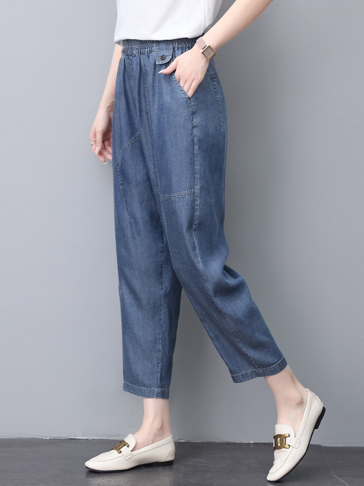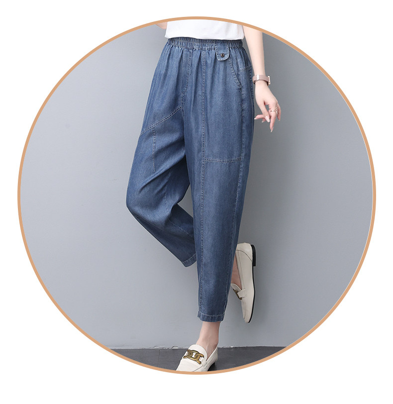 Джинсы, летний шелковый комбинезон, штаны для матери, в обтяжку, свободный прямой крой