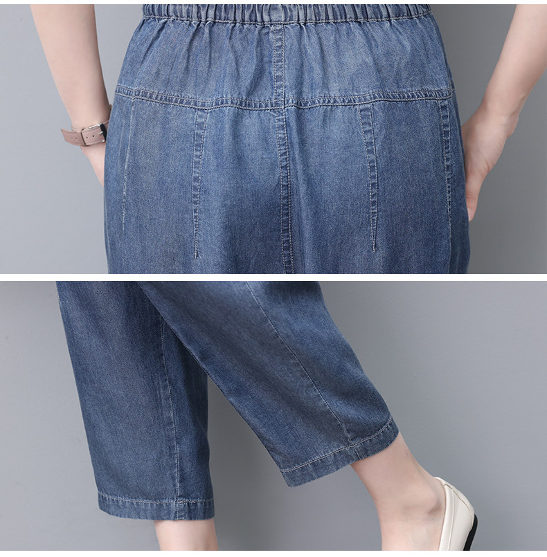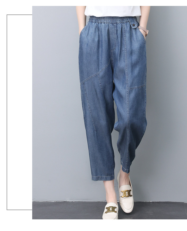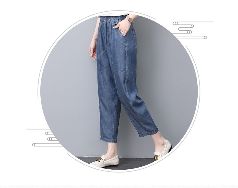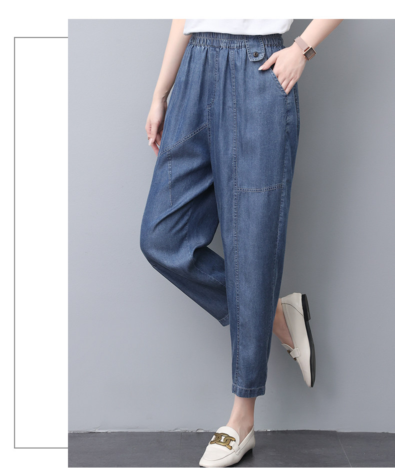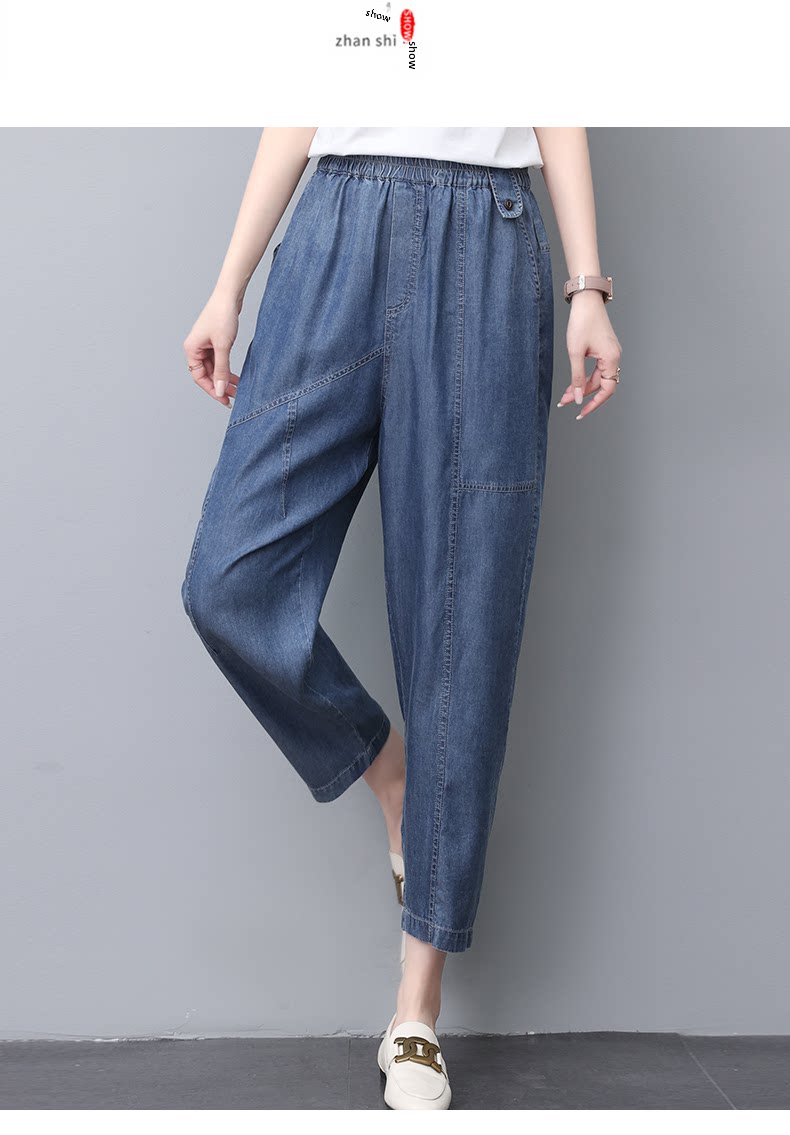 Джинсы, летний шелковый комбинезон, штаны для матери, в обтяжку, свободный прямой крой