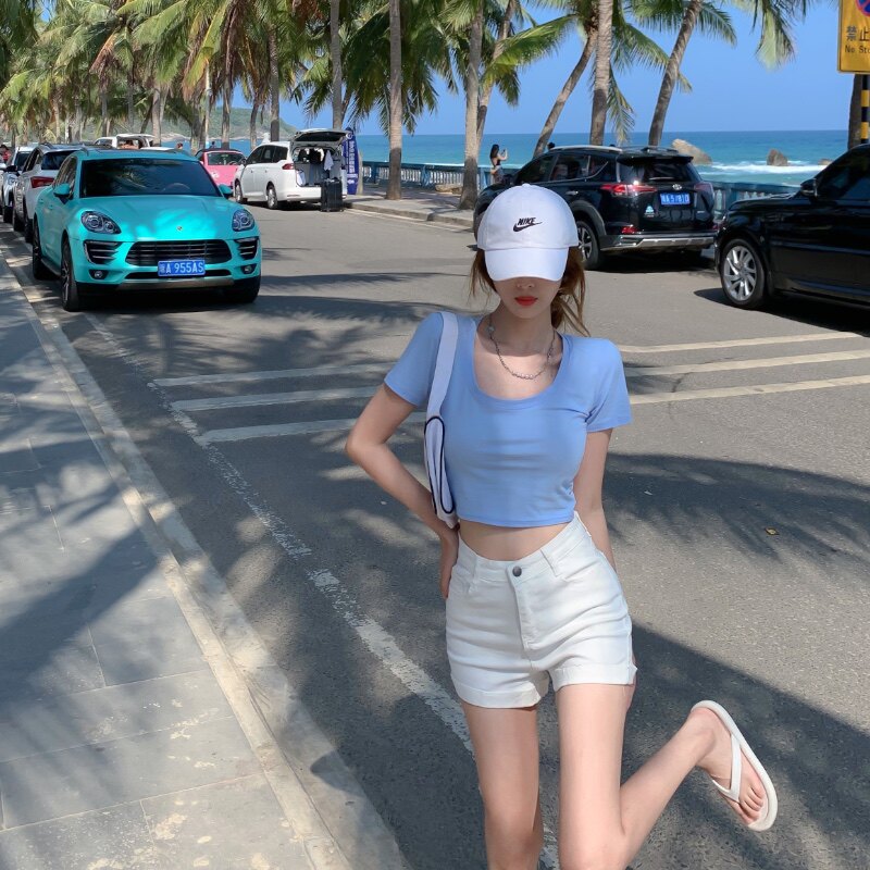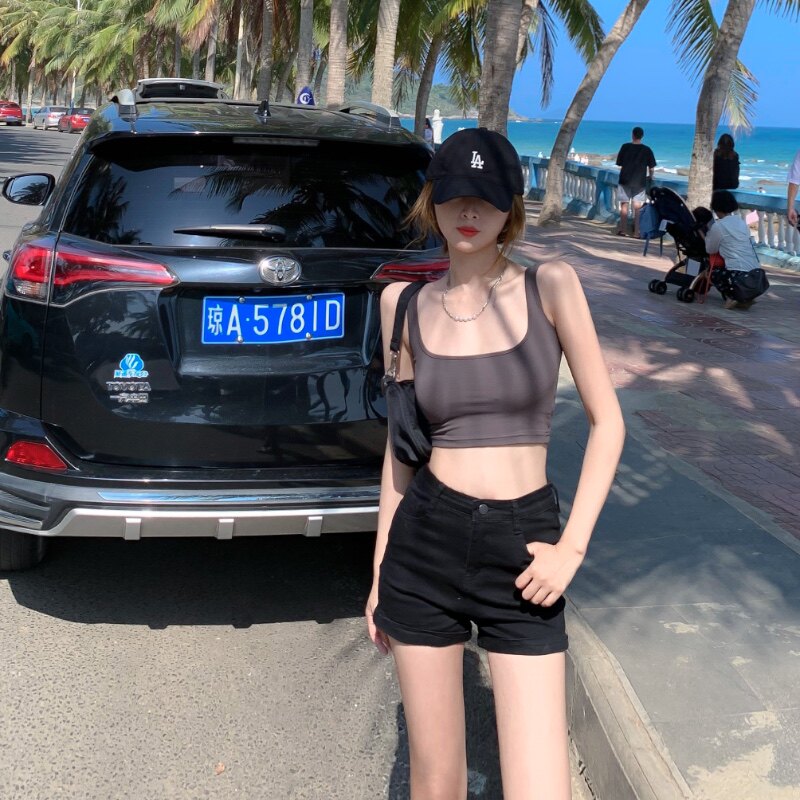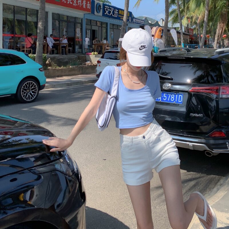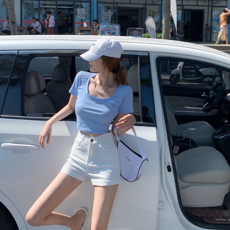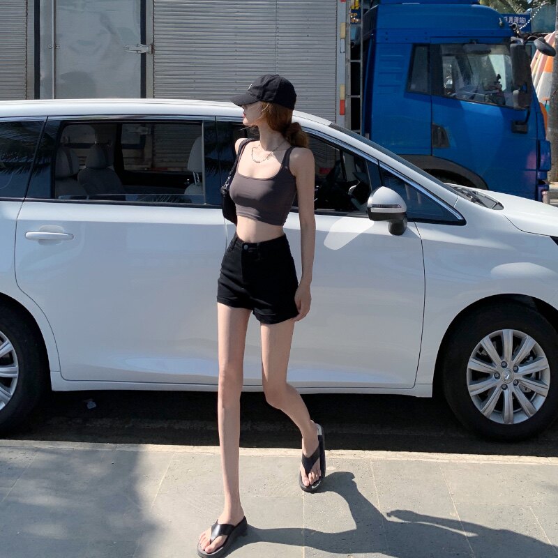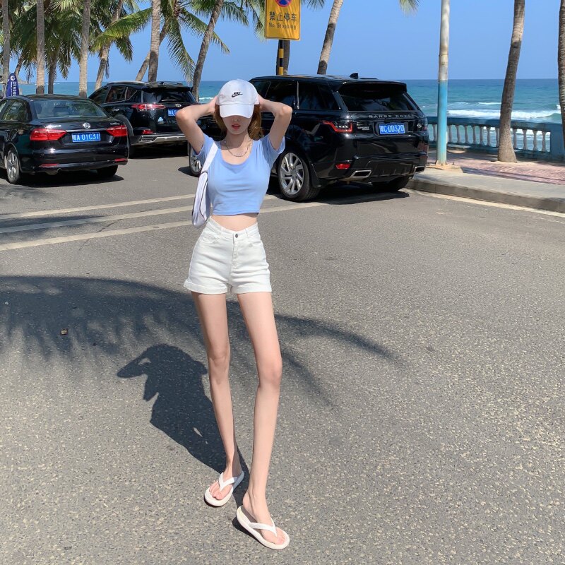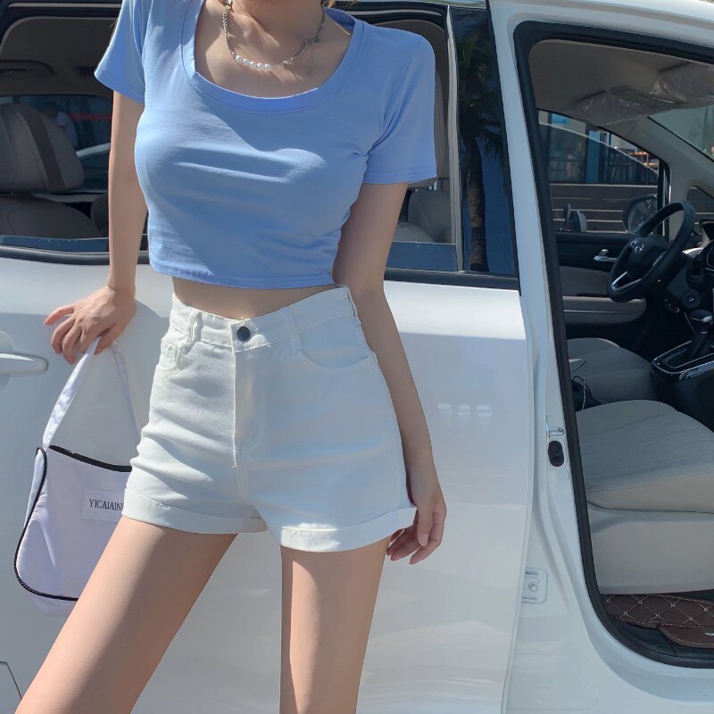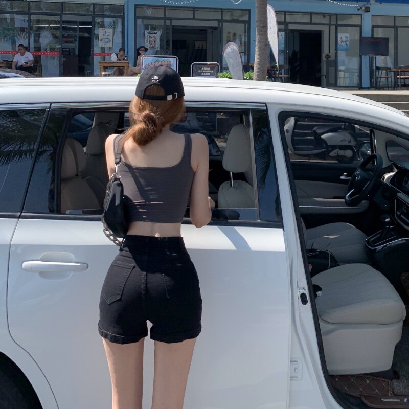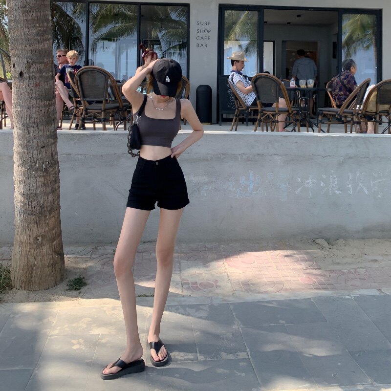 Черная цветная джинсовая юбка, шорты, летние тонкие белые штаны, высокая талия, по фигуре, в обтяжку, А-силуэт