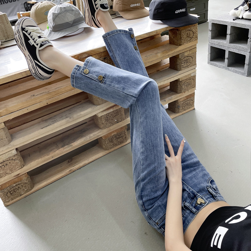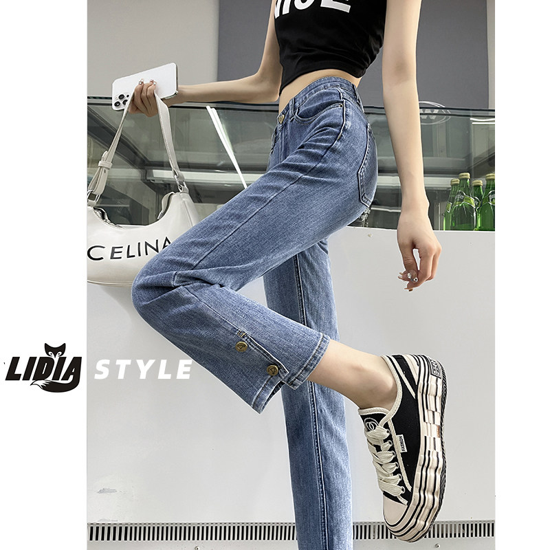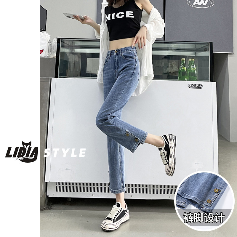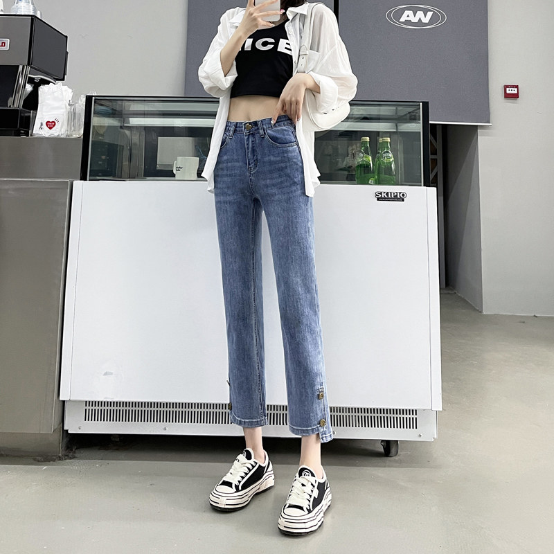 Штаны, летние эластичные прямые свободные джинсы, высокая талия, облегающий крой, свободный крой, по фигуре, подходит для подростков