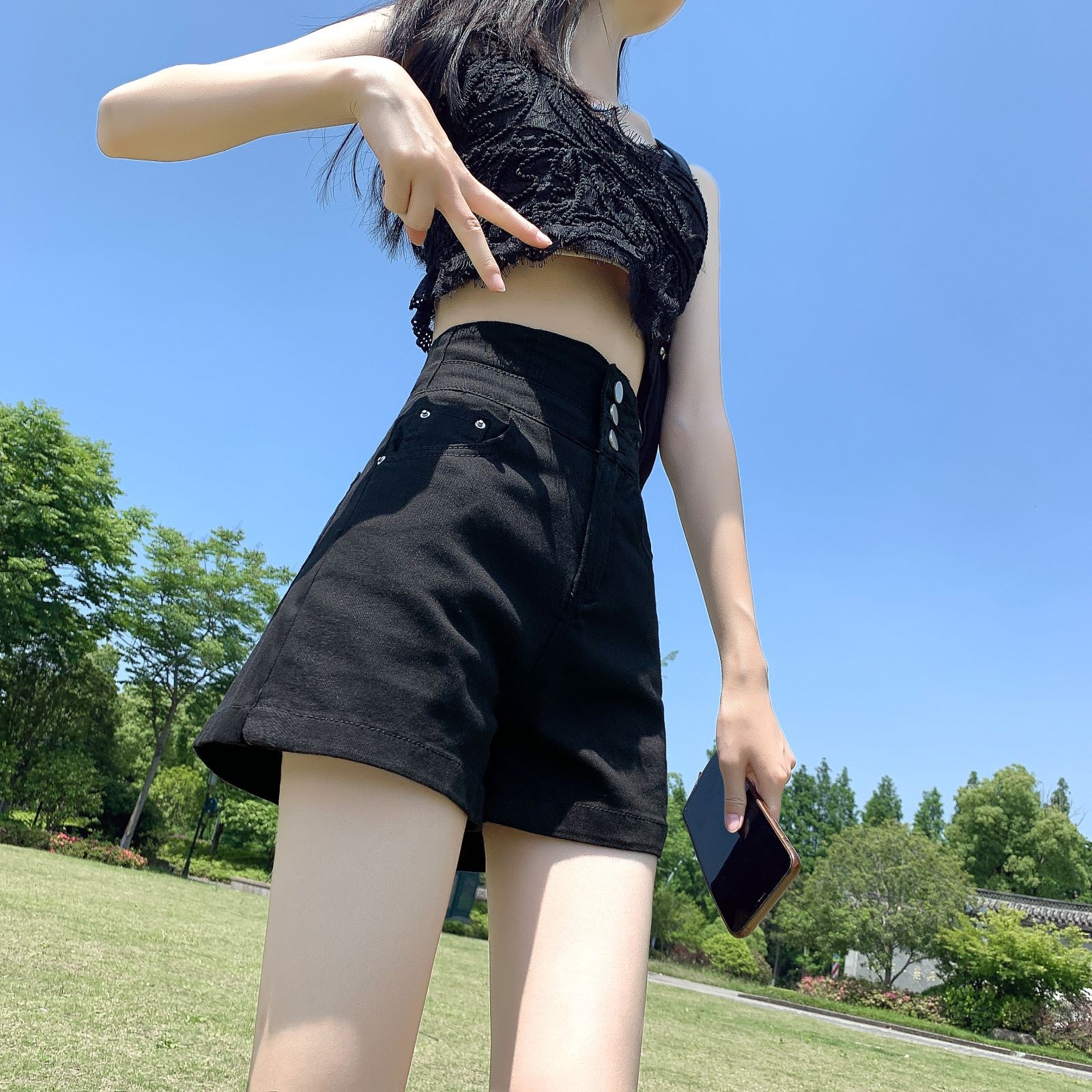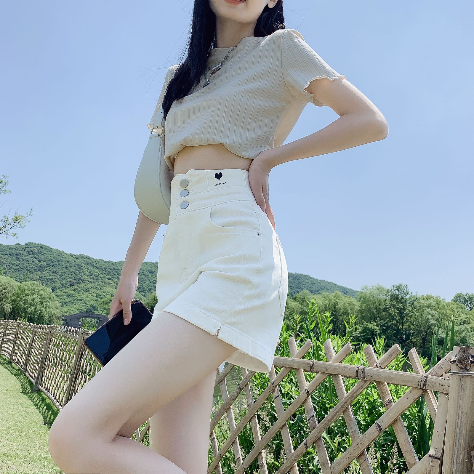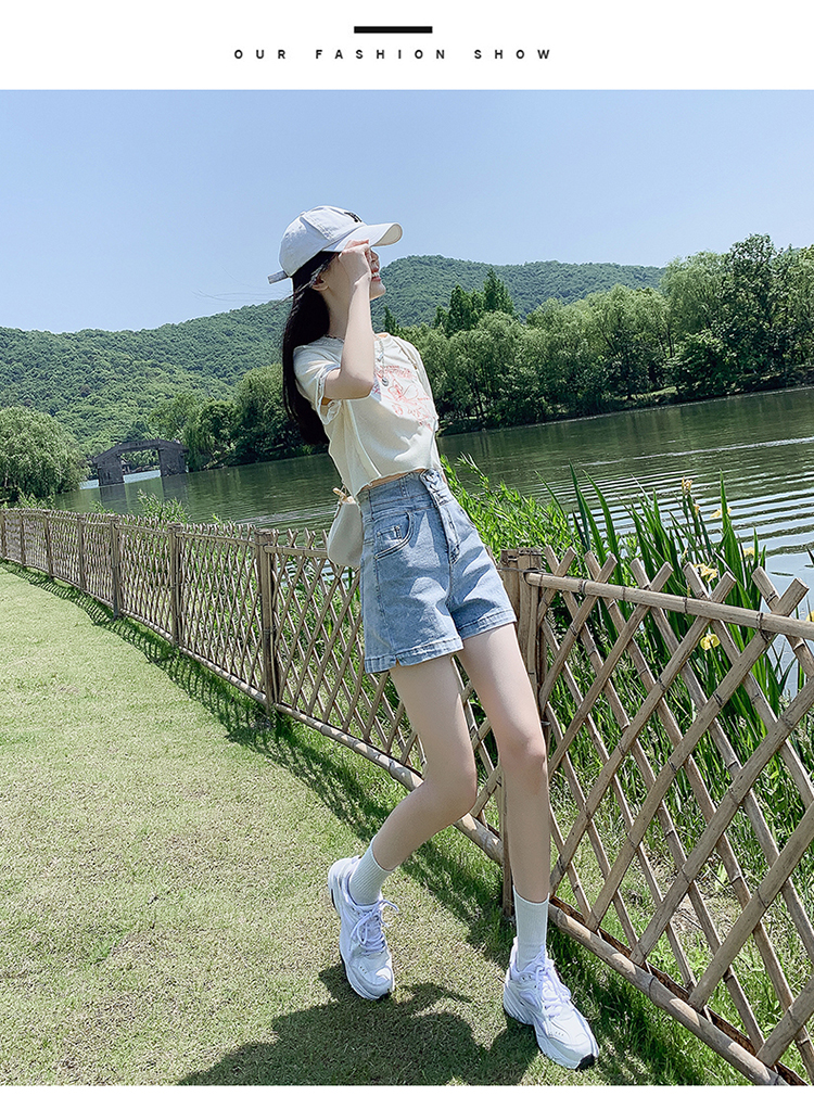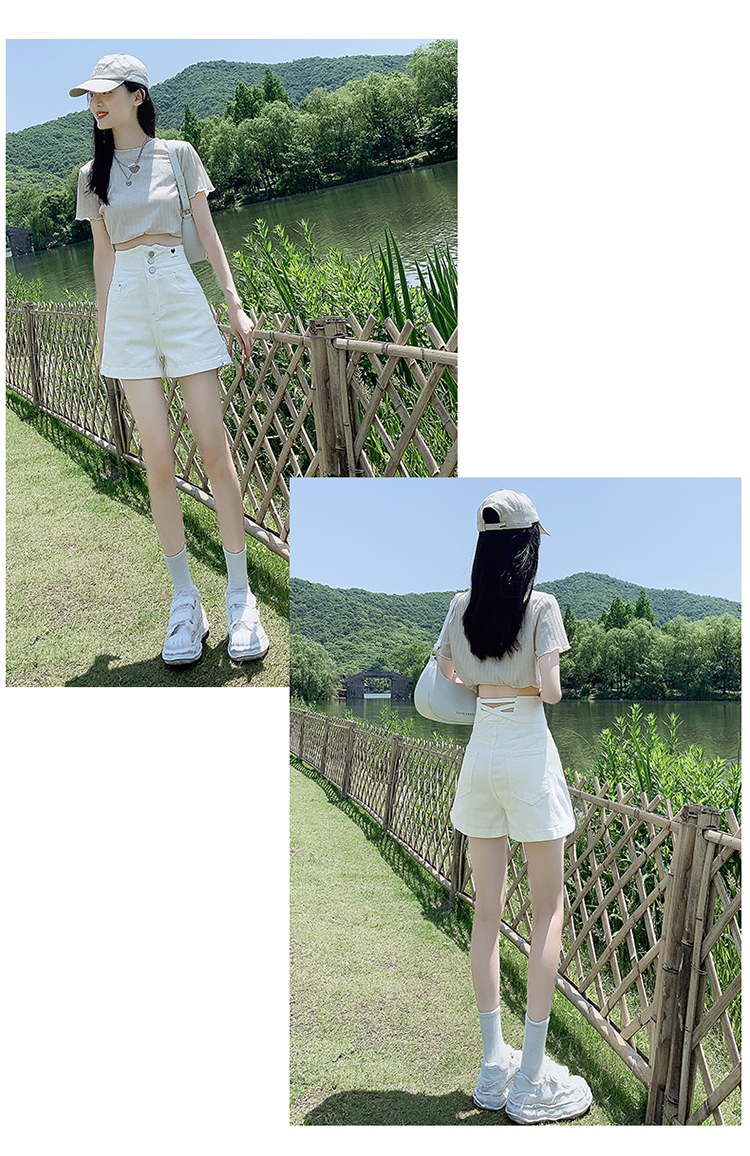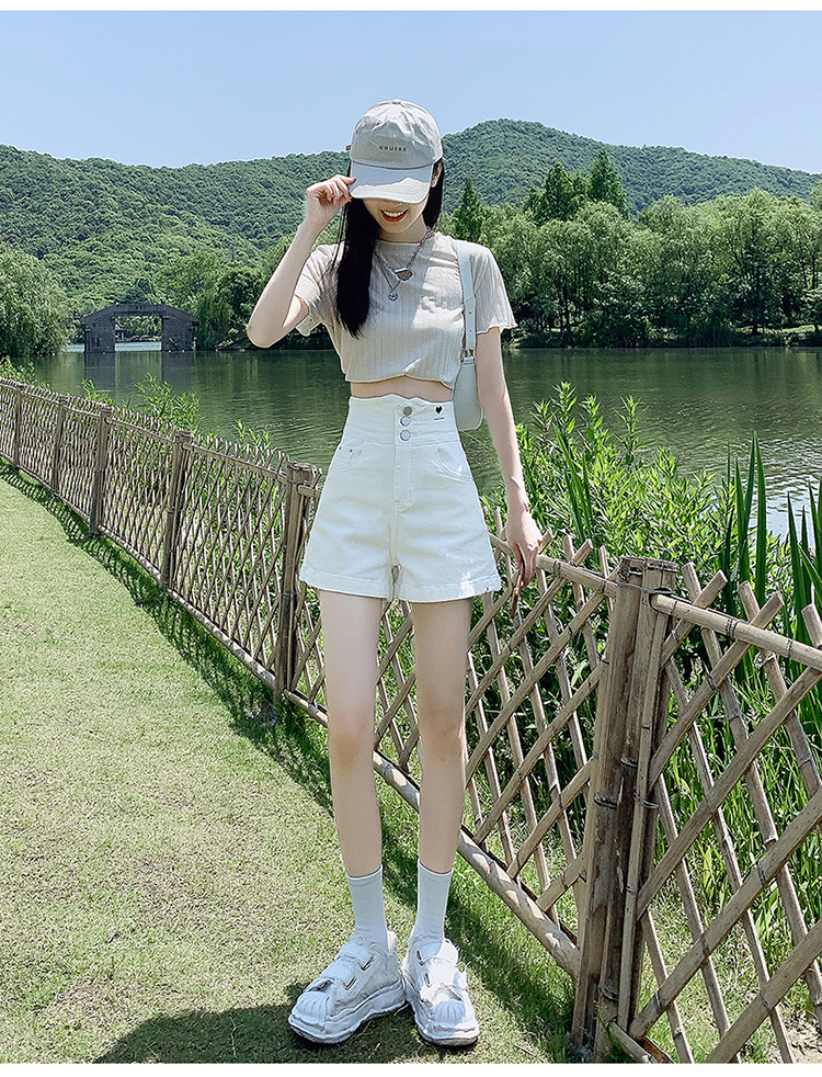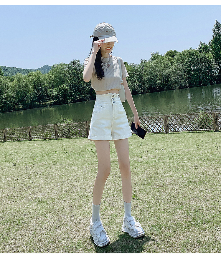 Tide, белая джинсовая юбка, шорты, штаны, повседневные брюки, высокая талия, по фигуре, в американском стиле