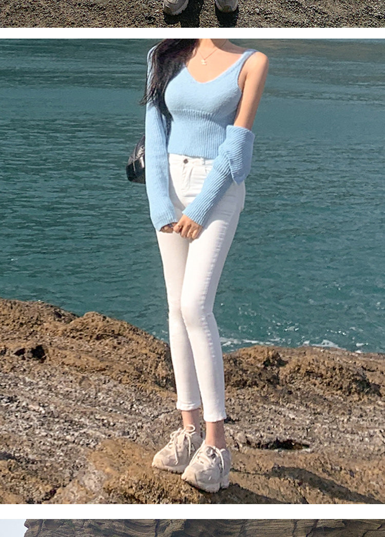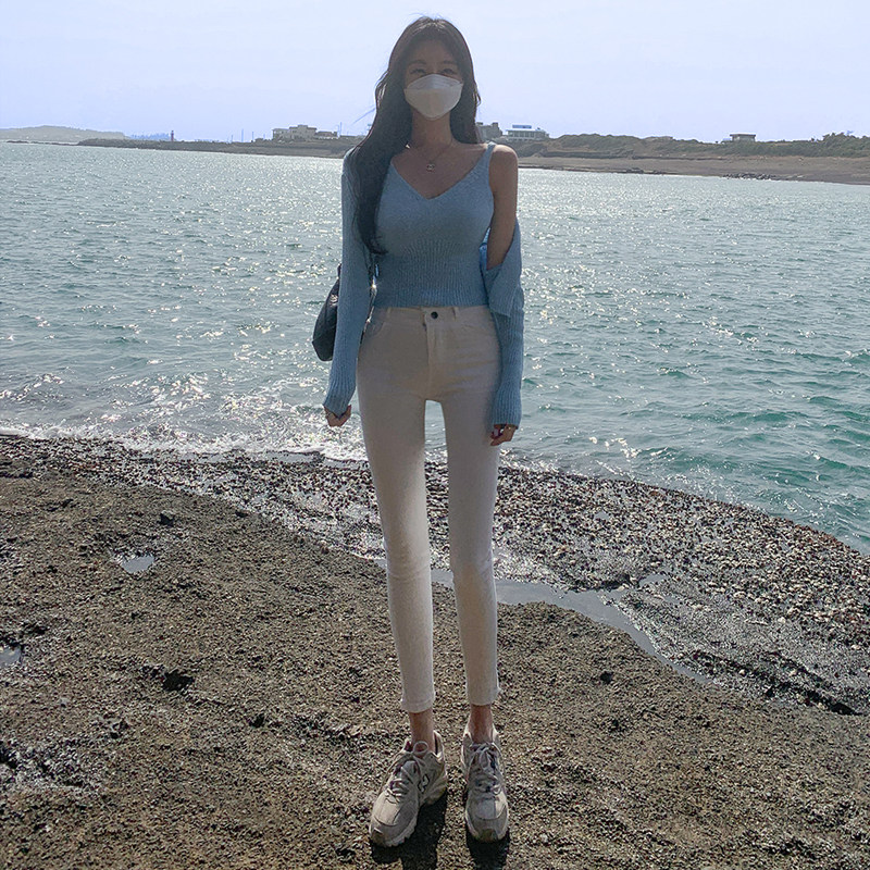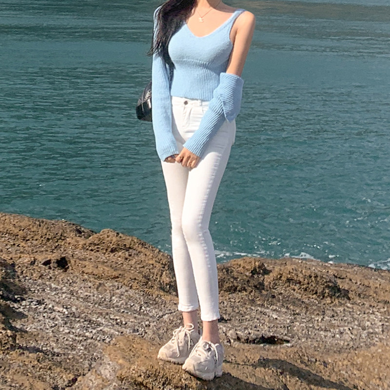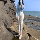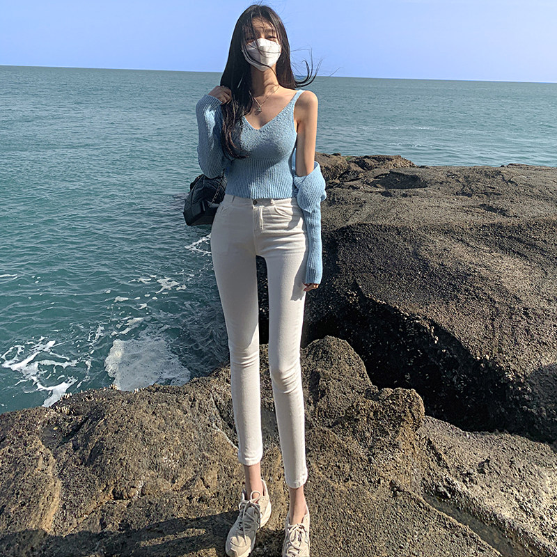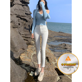 Осенние белые джинсы, приталенные штаны, эластичный карандаш, новая коллекция, высокая талия