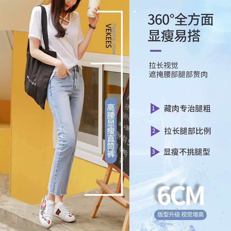 Светлые цветные осенние прямые свободные джинсы, штаны, высокая талия, коллекция 2023, оверсайз, свободный крой
