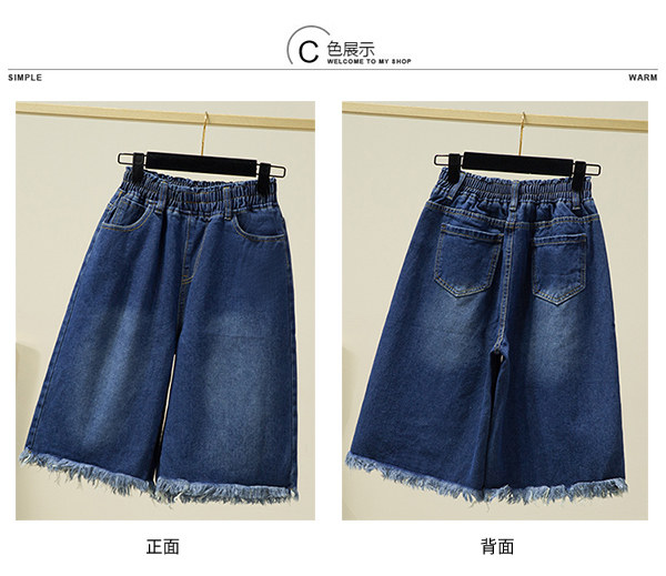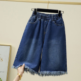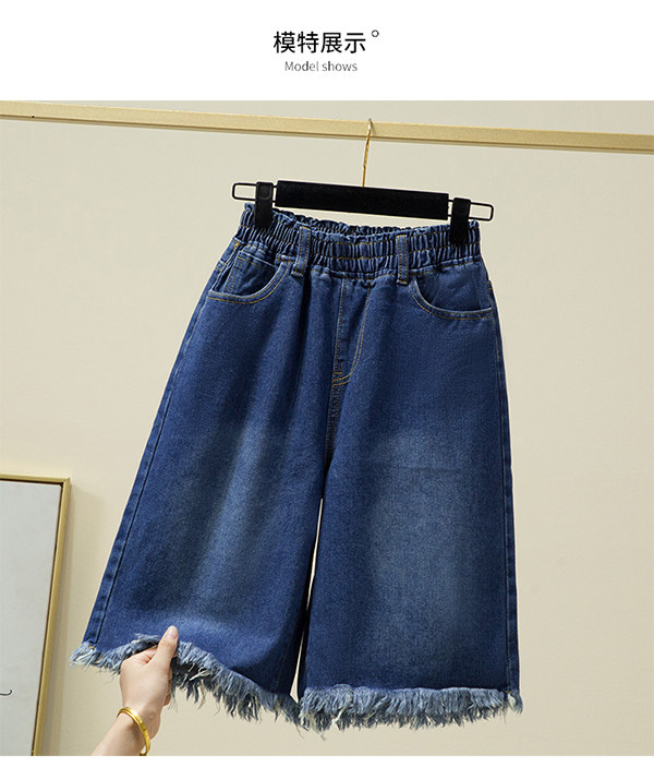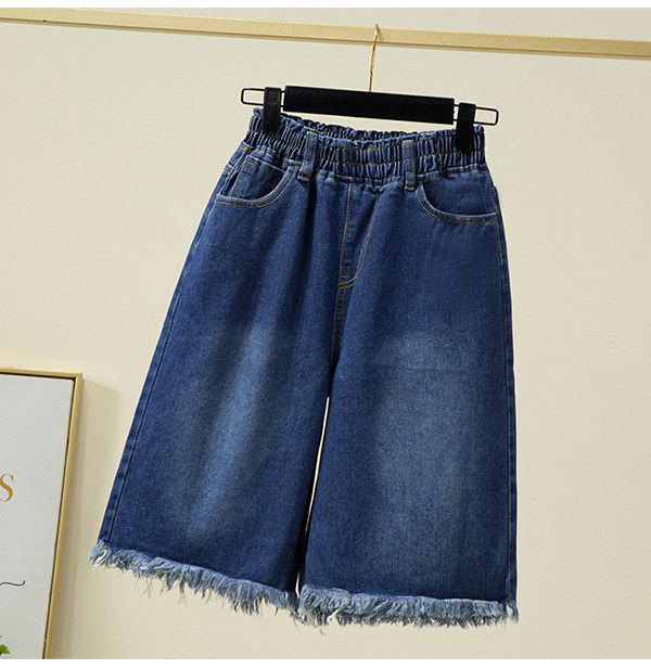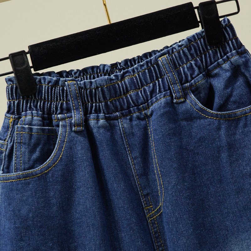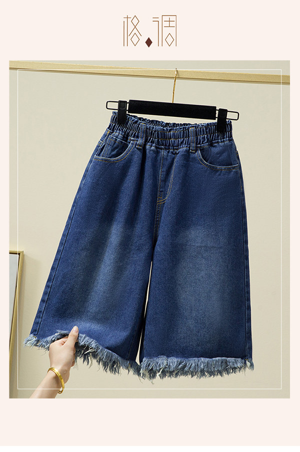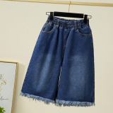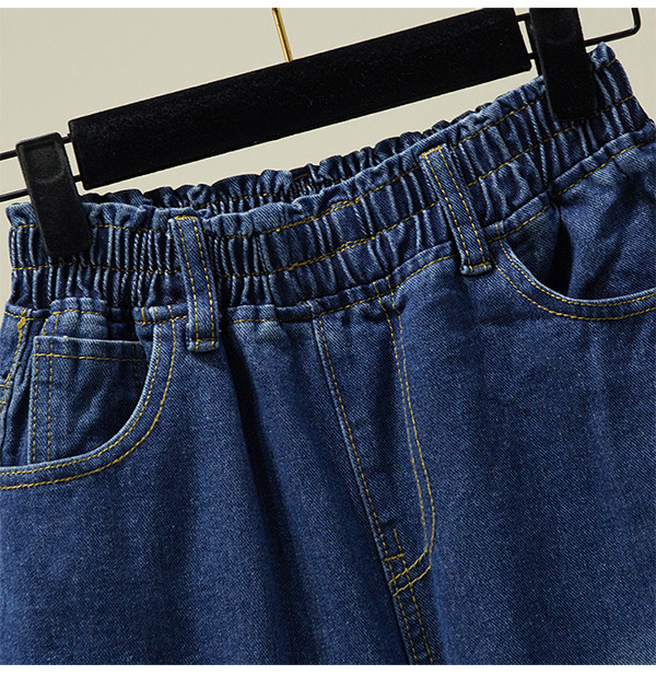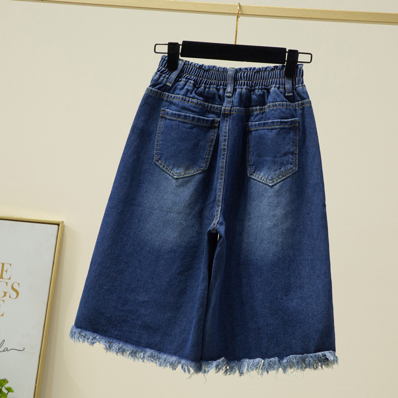 Летние джинсы, шорты, штаны, большой размер, высокая талия, эластичная талия, свободный прямой крой