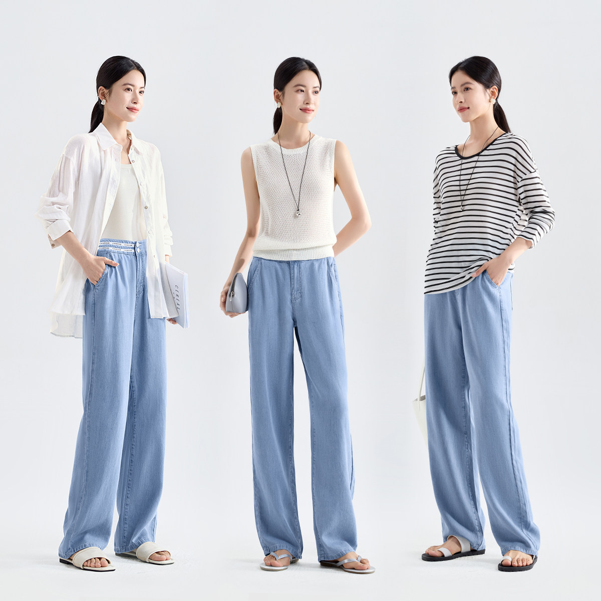 IHIMI Летние штаны для отдыха, легкие и тонкие дышащие джинсы, свободный прямой крой, облегающий крой