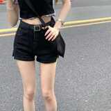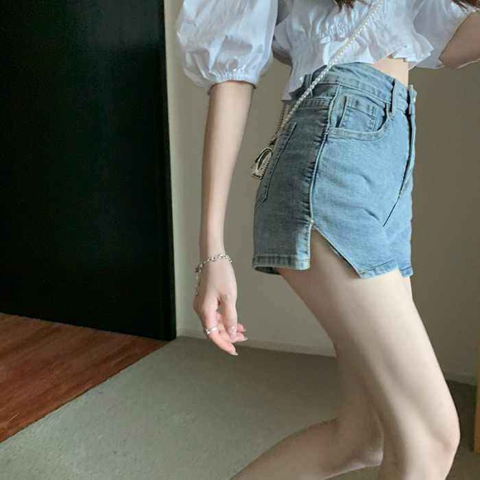 Синяя джинсовая юбка, шорты, приталенные штаны, коллекция 2023, высокая талия, облегающий крой