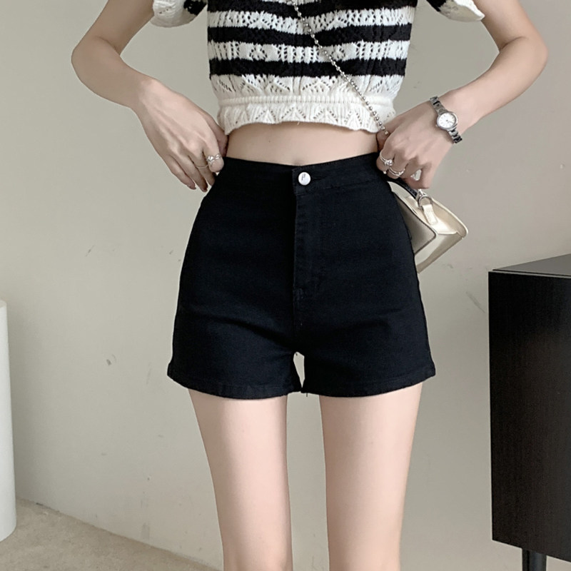 Черная тонкая джинсовая юбка, осенние шорты, леггинсы, приталенные модные эластичные штаны, в корейском стиле, высокая талия