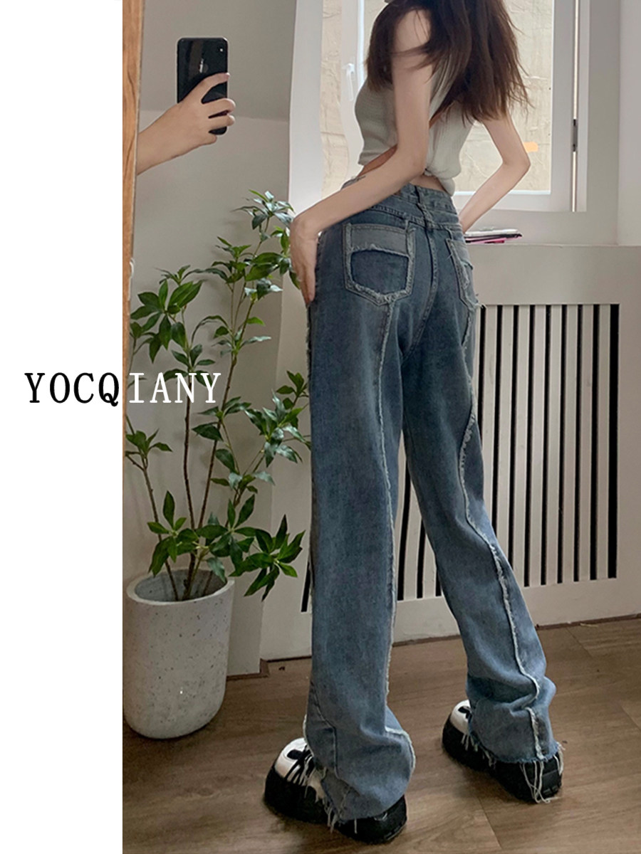 Тонкие джинсы, штаны, высокая талия, 2022, свободный прямой крой