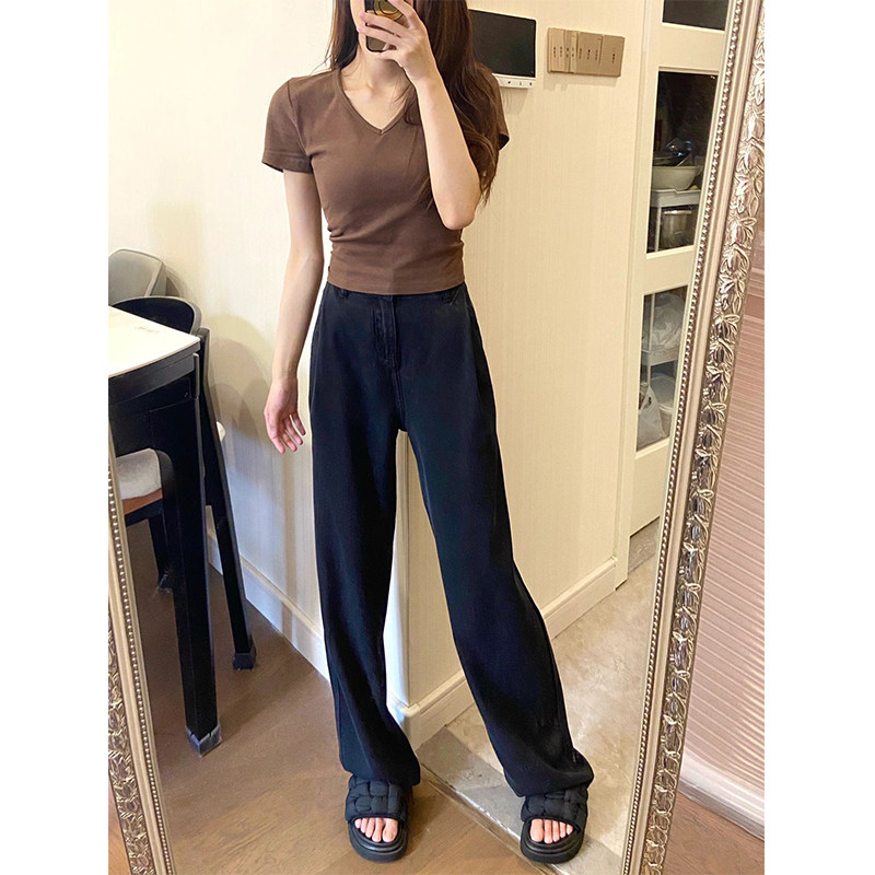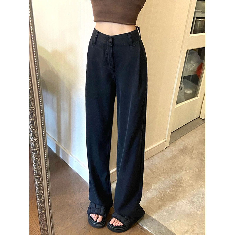 Черные ультратонкие тонкие приталенные джинсы, шелковые штаны, высокая талия, свободный прямой крой