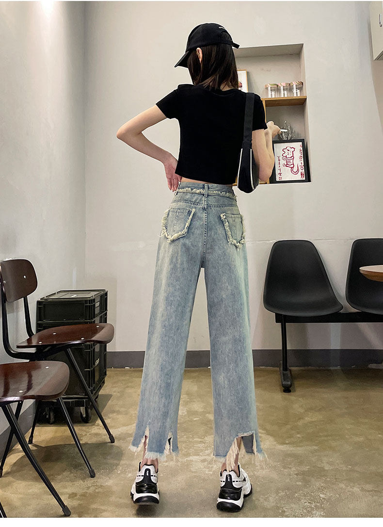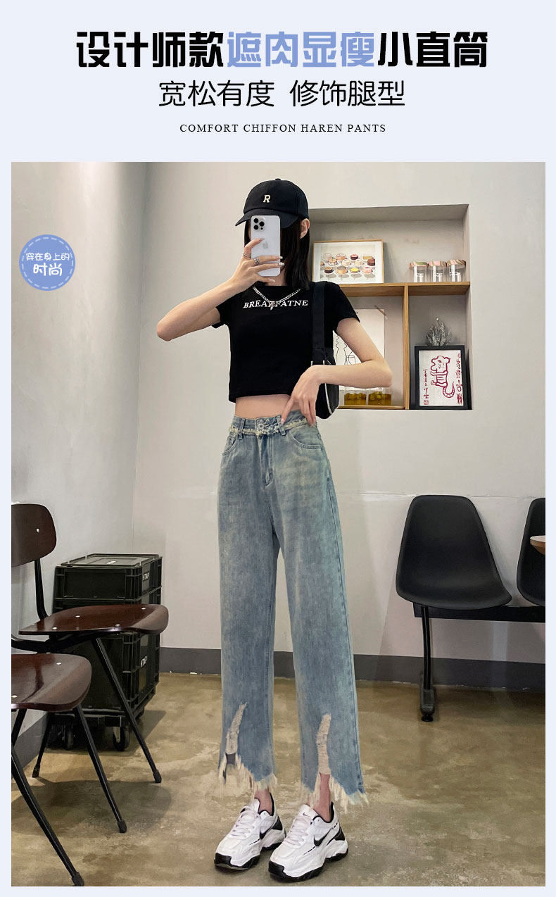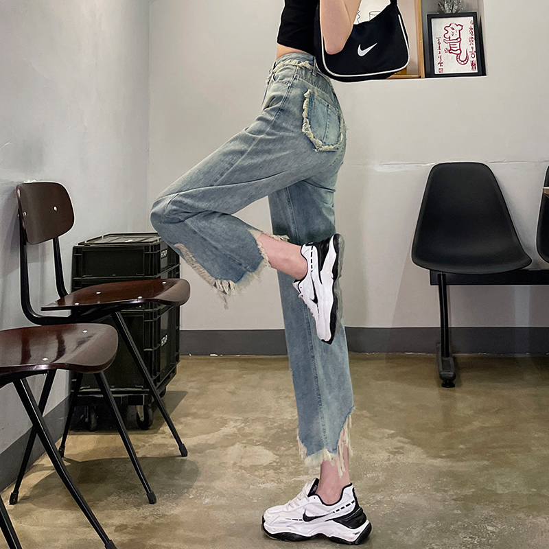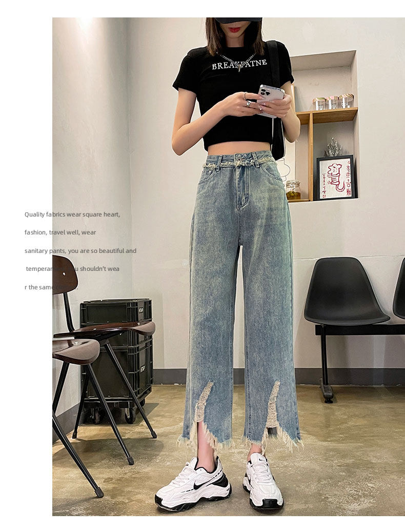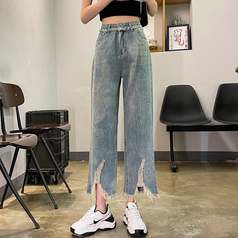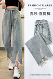 Ретро джинсовые тонкие джинсы, дизайнерские штаны, тренд сезона, высокая талия, свободный прямой крой
